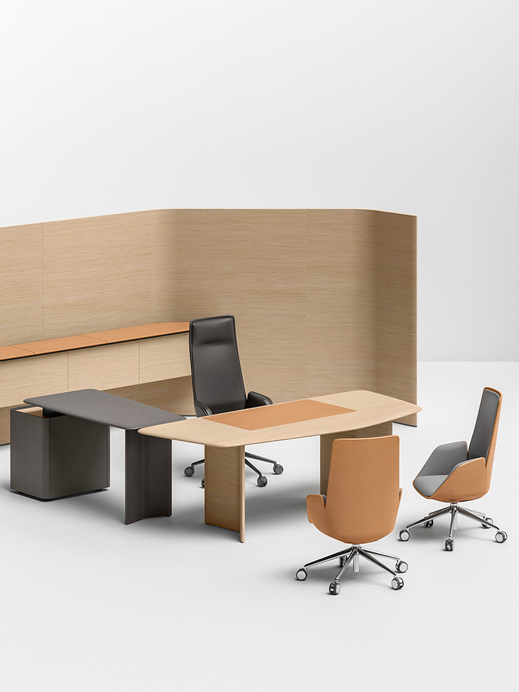 事實上,Cercle在加泰羅尼亞文中的含義是“互相對話的人組成的圈子”。Lievore、Altherr、Park的設(shè)計項目與Poltrona Frau的總裁辦公室新理念完美契合:其外形與品類以增進關(guān)系為主旨,設(shè)計目的在于激勵一種更加適應(yīng)開放空間中當(dāng)代經(jīng)理人的工作方式,即分享理念并將自己的創(chuàng)造能力與他人結(jié)合。