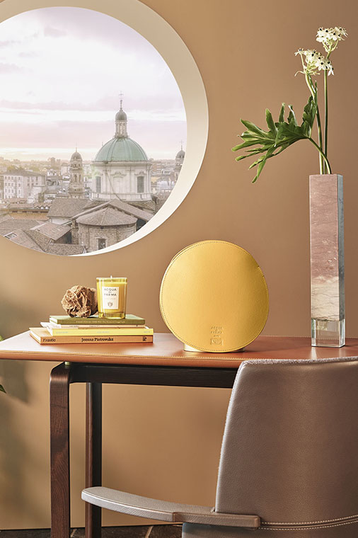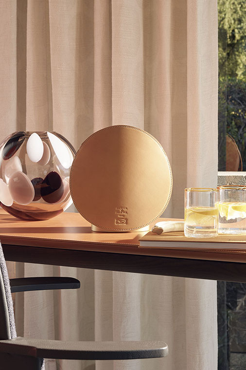Airound?自動(dòng)香氛器由二人組合GamFratesi設(shè)計(jì),由兩個(gè)元素組成:主體,從中擴(kuò)散香氣;圓形香氛罩,採(cǎi)用精美的PelleFrau?軟皮製作,有四種不同的顏色以及Cuoio Saddle Extra皮革版本可選。設(shè)計(jì)線條極為流暢,由兩塊軟皮或皮革圓盤組成,帶有對(duì)比色縫線和同色系染色邊緣。一個(gè)半柔性塑膠材質(zhì)的支撐,用以確保穩(wěn)定性。
