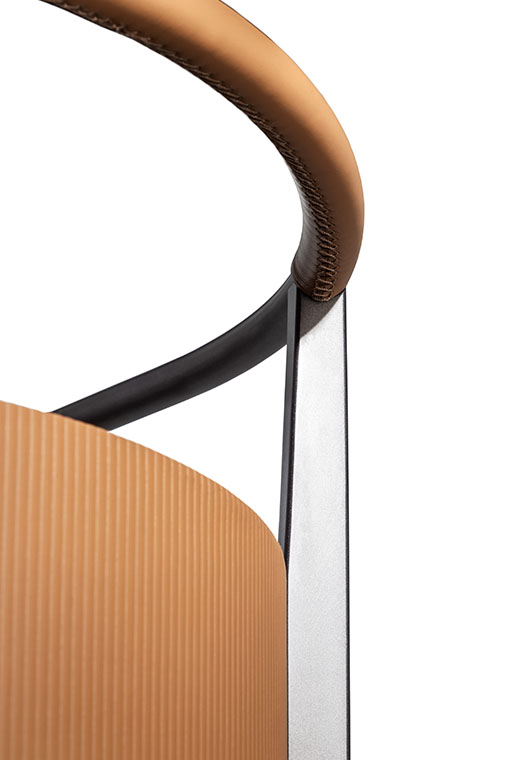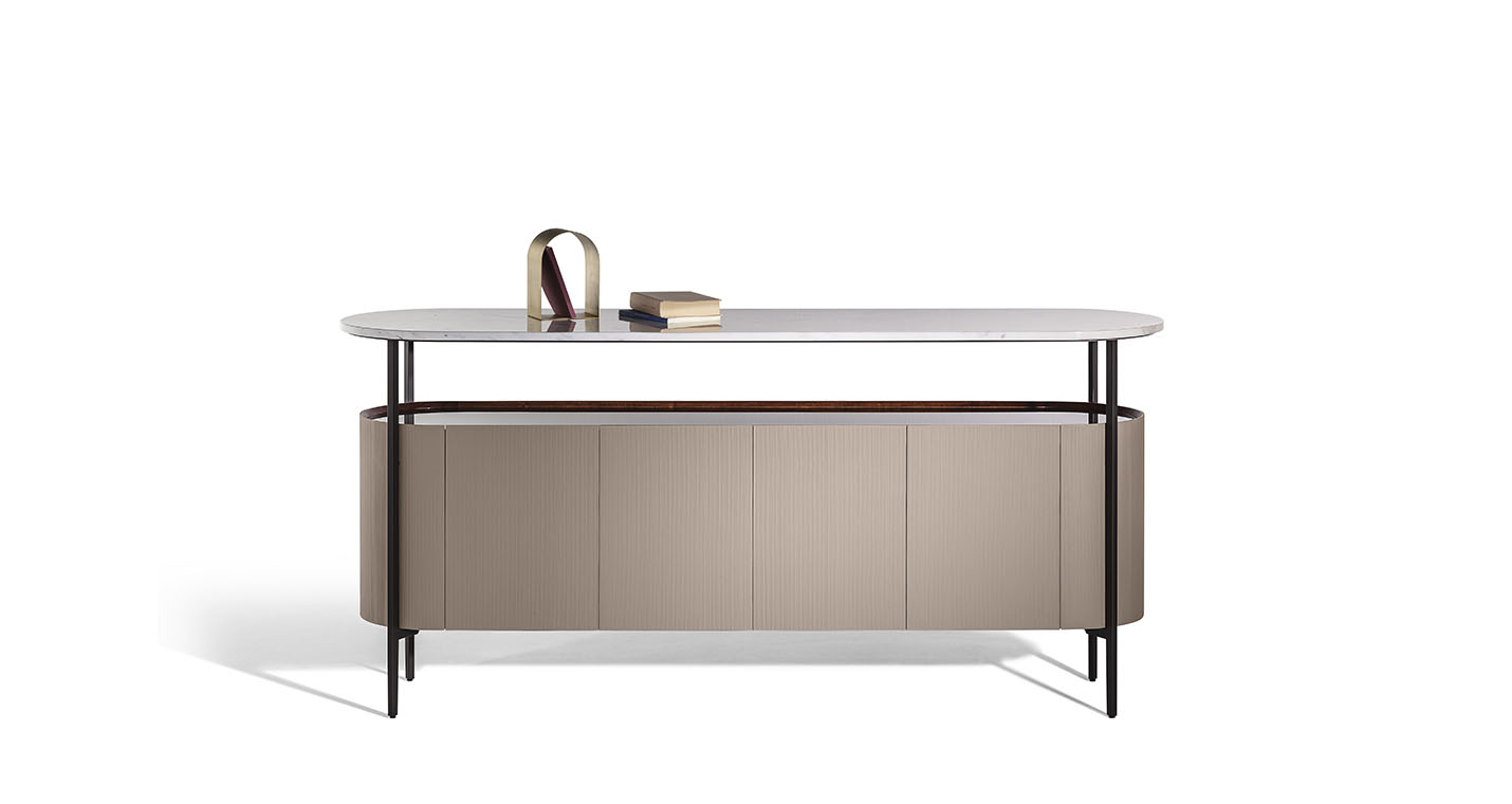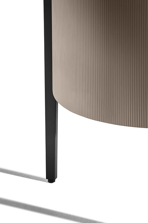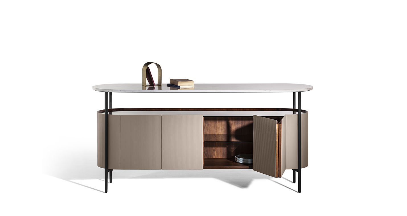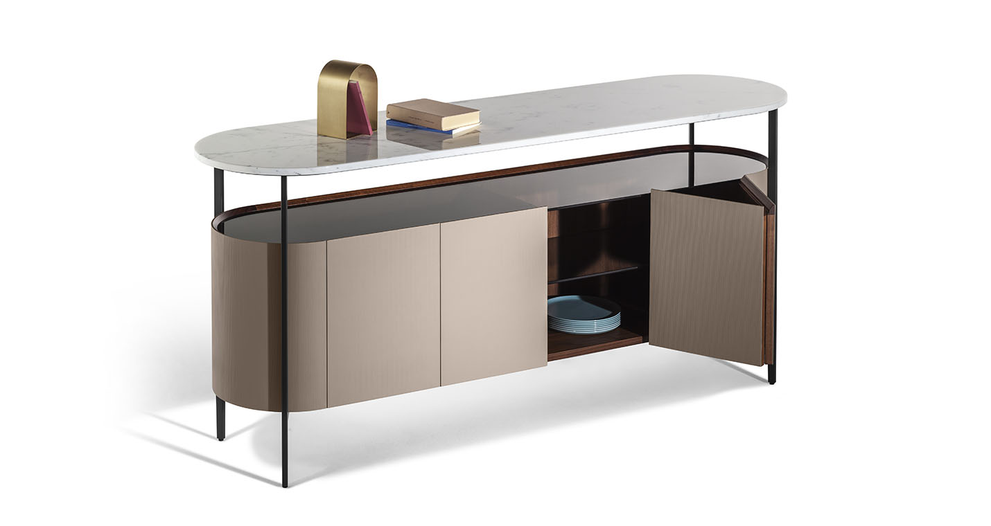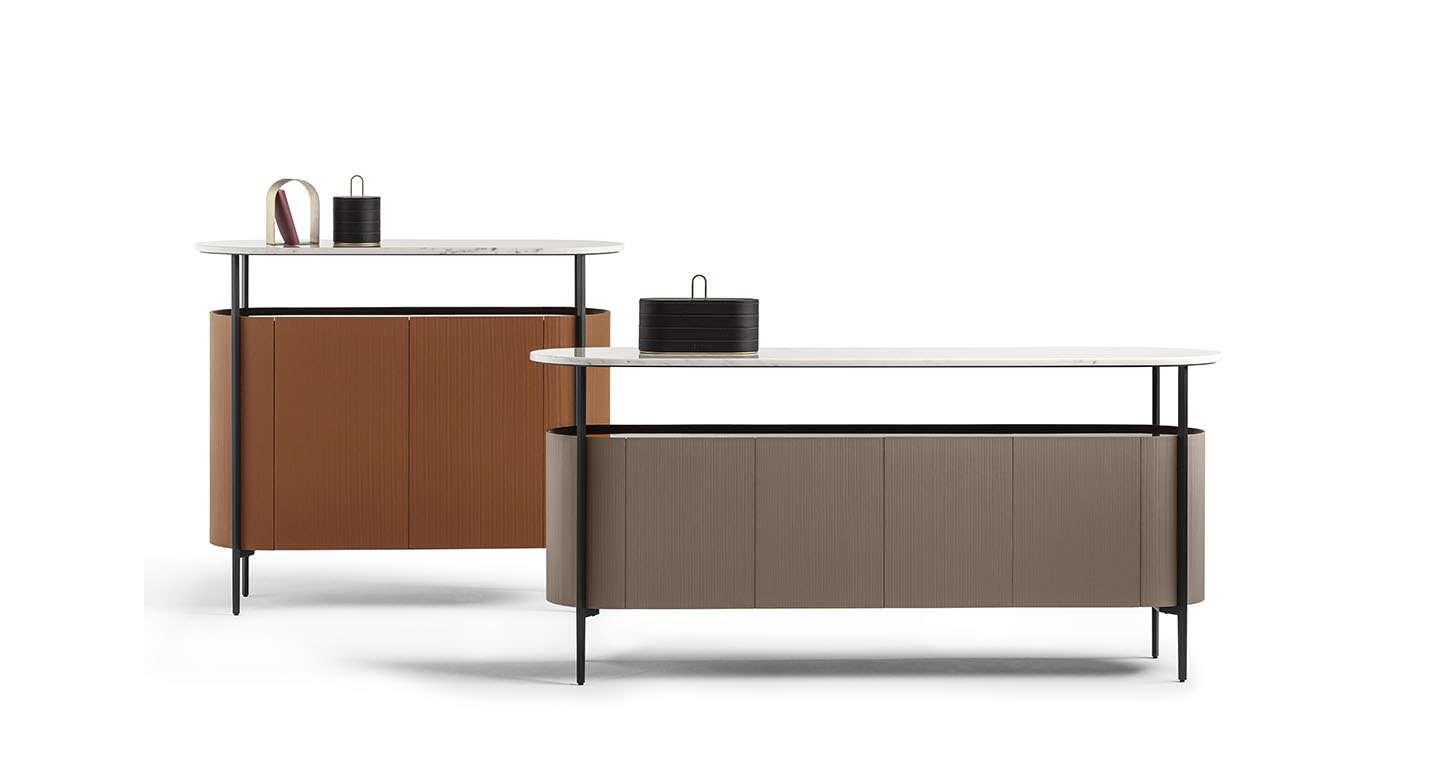 Mi收納柜外表面覆蓋Saddle Extra硬皮,壓印canneté紋理。四種顏色可選:Carbone(木炭)、Cammello(駱駝)、Polvere(灰塵)和Corda(結(jié)繩)。