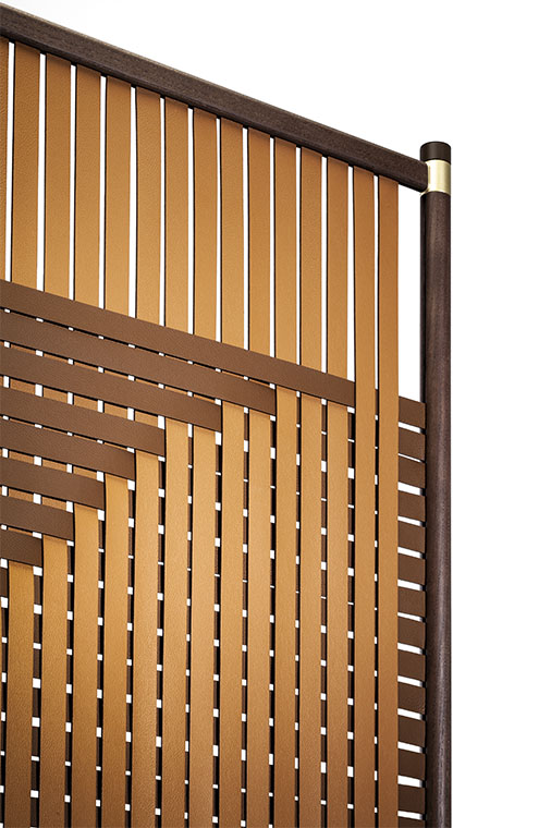 順應各種需求,以優(yōu)雅、輕巧、內(nèi)斂的方式重新設計心中所愿的角落。這就是Plot模組化屏風。Plot屏風由GamFratesi設計,Poltrona Frau生產(chǎn),精簡設計令其獨具特色,不僅可用于分隔住宅空間,保證更強的私密性,同時還具有裝飾環(huán)境的作用。使用軟皮編織創(chuàng)造出的各種幾何圖案是本品的象徵性元素。在Round(圓形)面板中,編織成的圓形發(fā)展為各種組合;而在Square(方形)面板中,再次呈現(xiàn)的幾何形狀為方形。