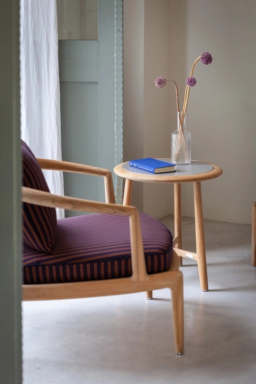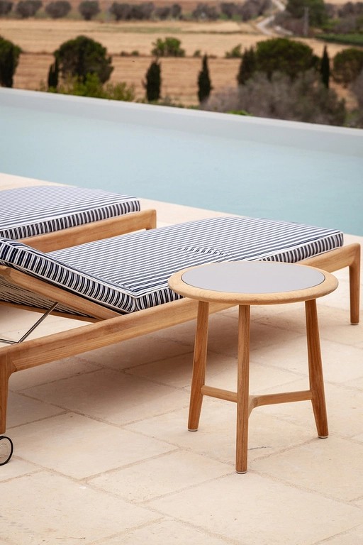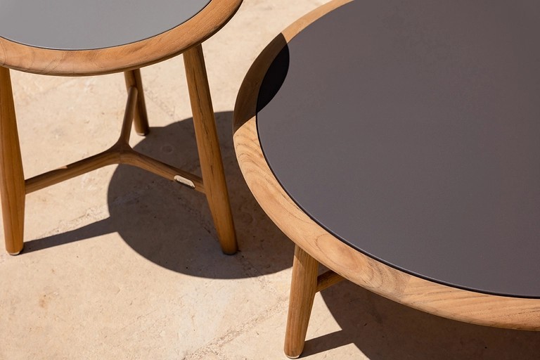 Design with clean-cut lines and materials reminiscent of Mediterranean culture, the outdoor tables are the ideal furnishing accessory to complete outdoor environments such as gardens, terraces, rooftops, verandas and poolside areas, in both residential and contract settings. Made of teak wood with a natural finish, these tables have a hand-finished enamelled stoneware top in four different colours. Available in two sizes and heights. They form part of The Secret Garden, designed by Roberto Lazzeroni, and complete the range offered by Poltrona Frau Boundless Living Outdoor Collections.