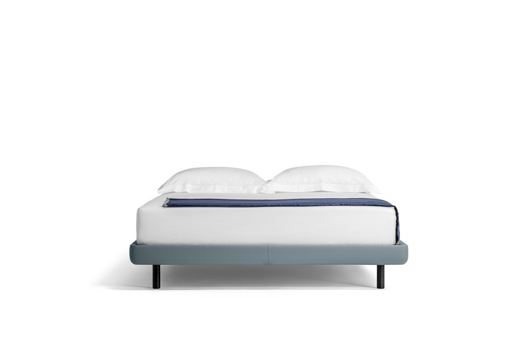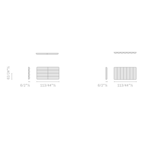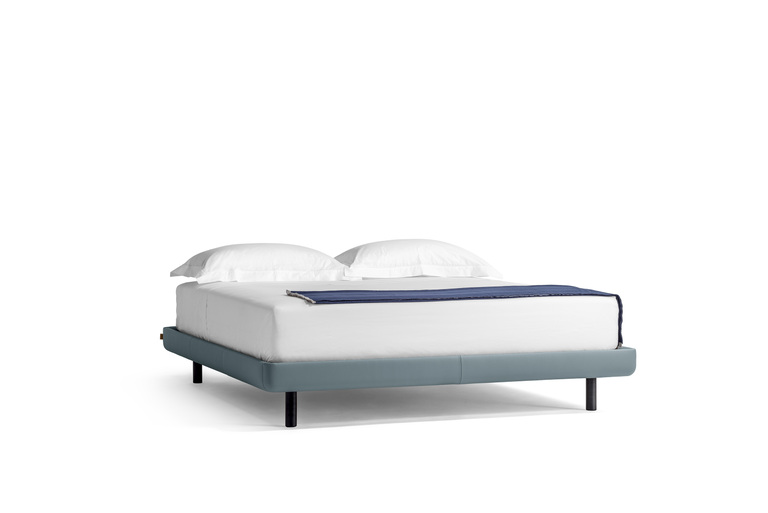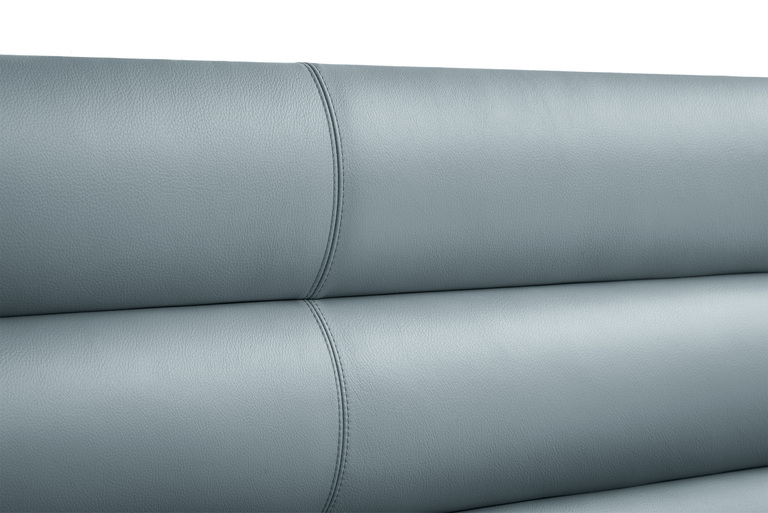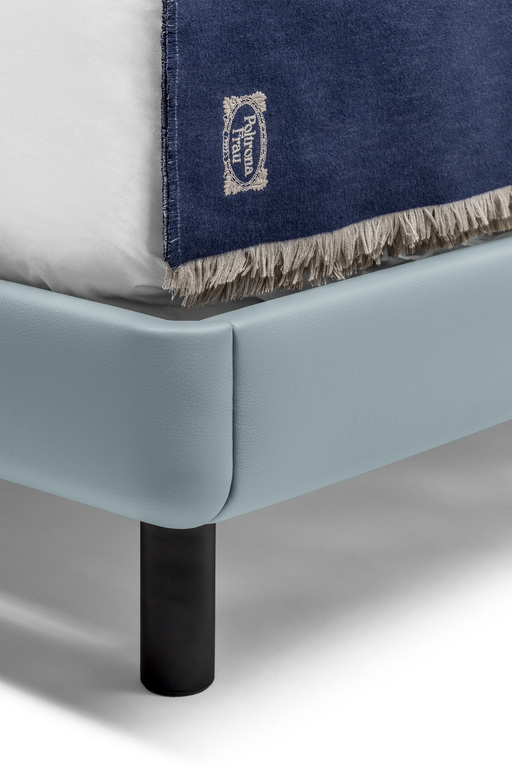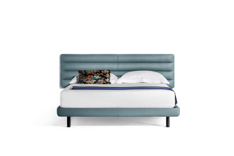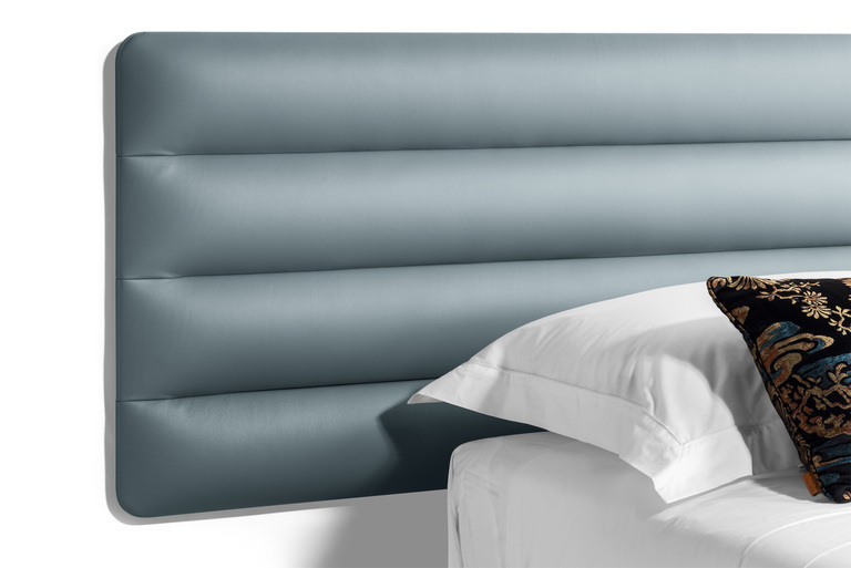 The Ferdinandea headboard features a birch plywood frame coated with a layer of polyurethane foam and polyester wadding and upholstered in Pelle Frau, with delicate matching tone-on-tone stitching that makes up a geometric pattern available in two variations: horizontal or vertical. The back of the Ferdinandea headboard is covered in black canvas and can be anchored to the wall using a bayonet fastening system made of matte black painted metal. Designed to be combined in complete freedom with the different Ferdinandea bed variations, the headboard is available in different lengths.