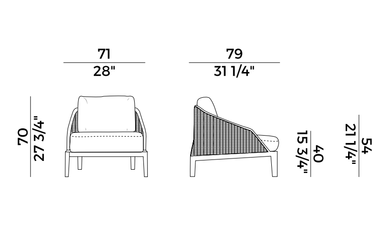 Characterized by a low and deep seat that invites you to relax, the Grace lounge armchair is perfect in combination with the sofa of the main collection.