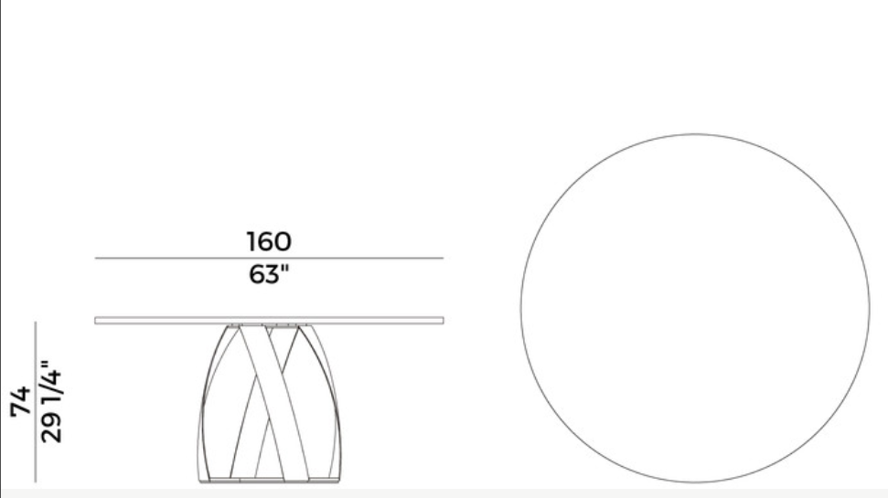 Table with round base and oval top in Canaletto walnut, marble or transparent tempered glass. Materials as per collection.