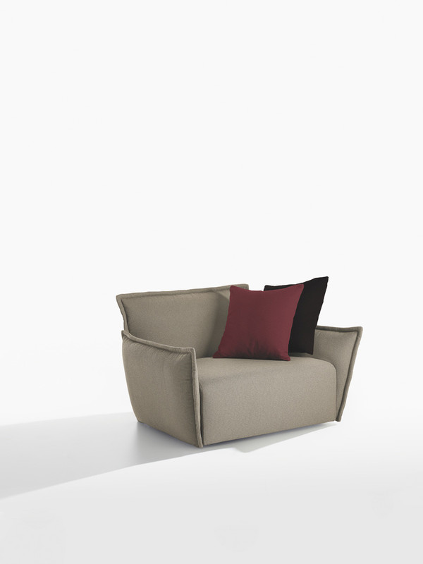 The Purple upholstered family, composed of modular sofas and armchair, is characterized by the soft and curved cushioning with removable outdoor fabric covers, serving as a backrest and seat for the maximum comfort.