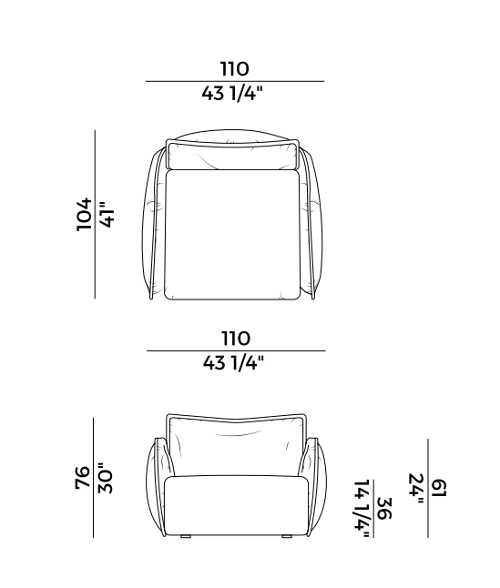 The armchair has an internal structure in solid beech wood and birch plywood and fire retardant polyurethane foam padding, in the outdoor coverings as per collection.