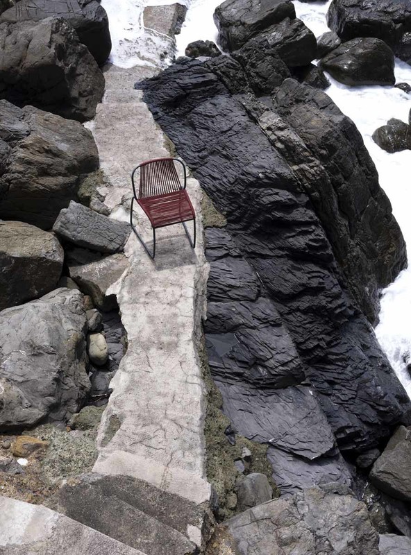 Epoxy powder-coated steel structure with an entirely hand-woven seat.