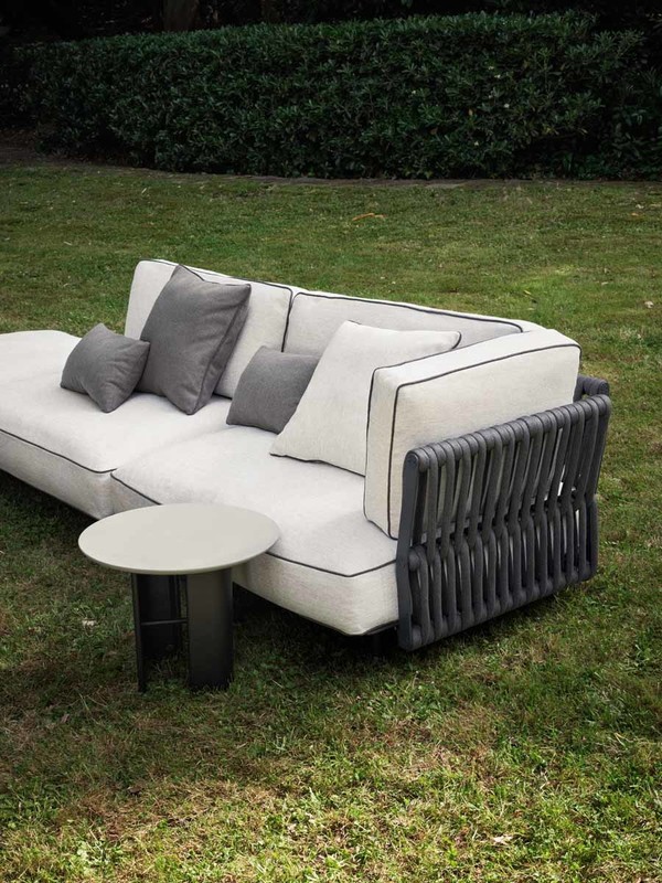 Connection between the bases in painted black metal and top in laminated porcelain or in light grey natural stone.
