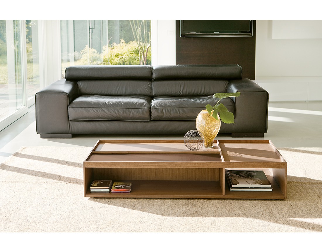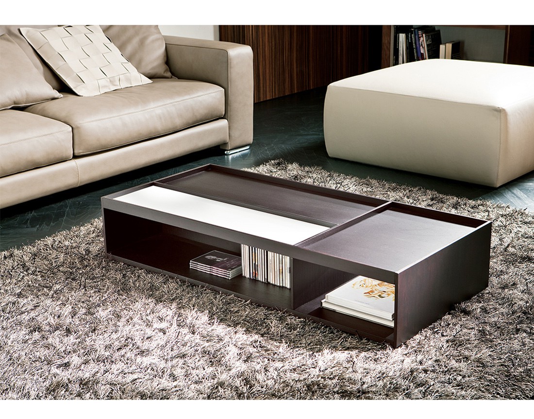 Tavolino con struttura placcata frassino. Possibilità di inserimento nel piano di vetro verniciato (extra chiaro bianco, nero o moka). Finiture disponibili: WG wengé, NC noce, TB tabacco, laccato opaco poro aperto ( L21 bianco, L29 madreperla, L23 cappuccino, L25 grigio fumo, L22 nero, L24 rosso ).