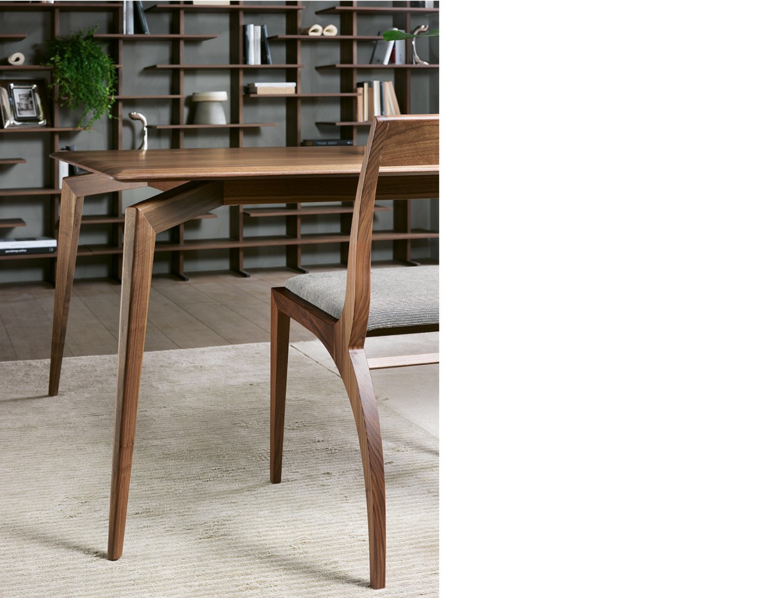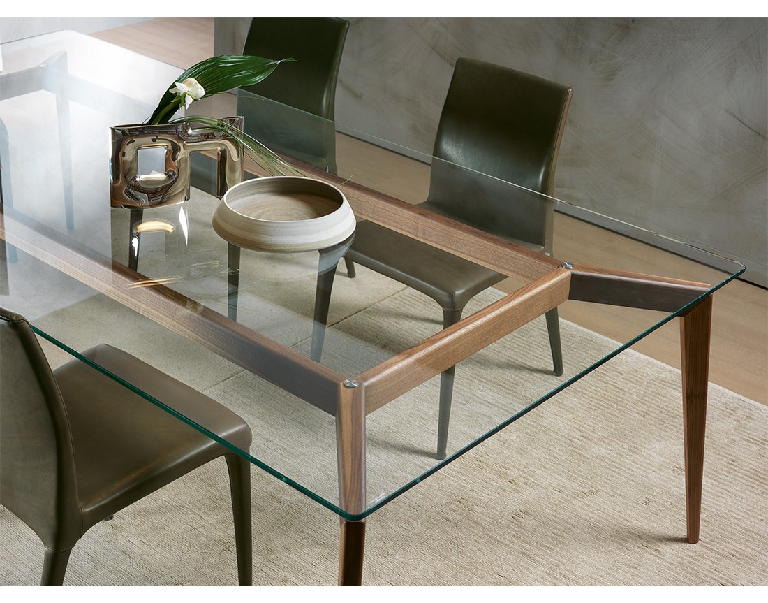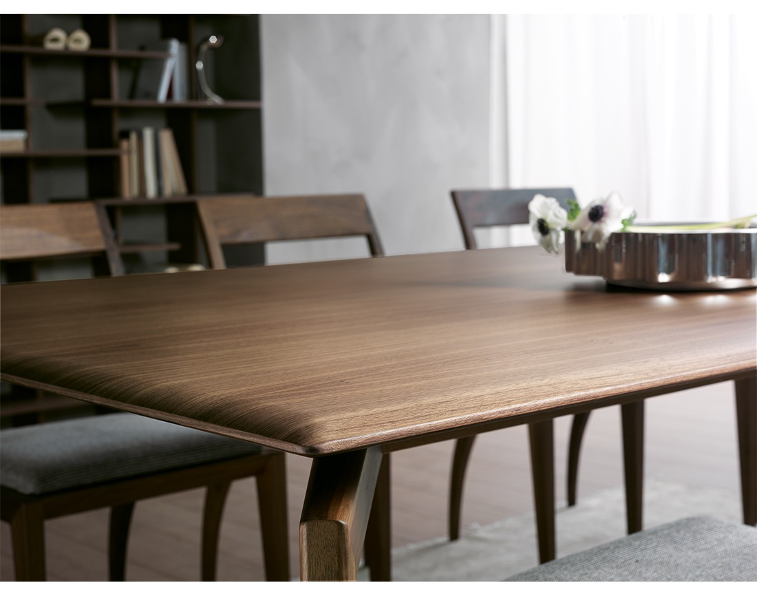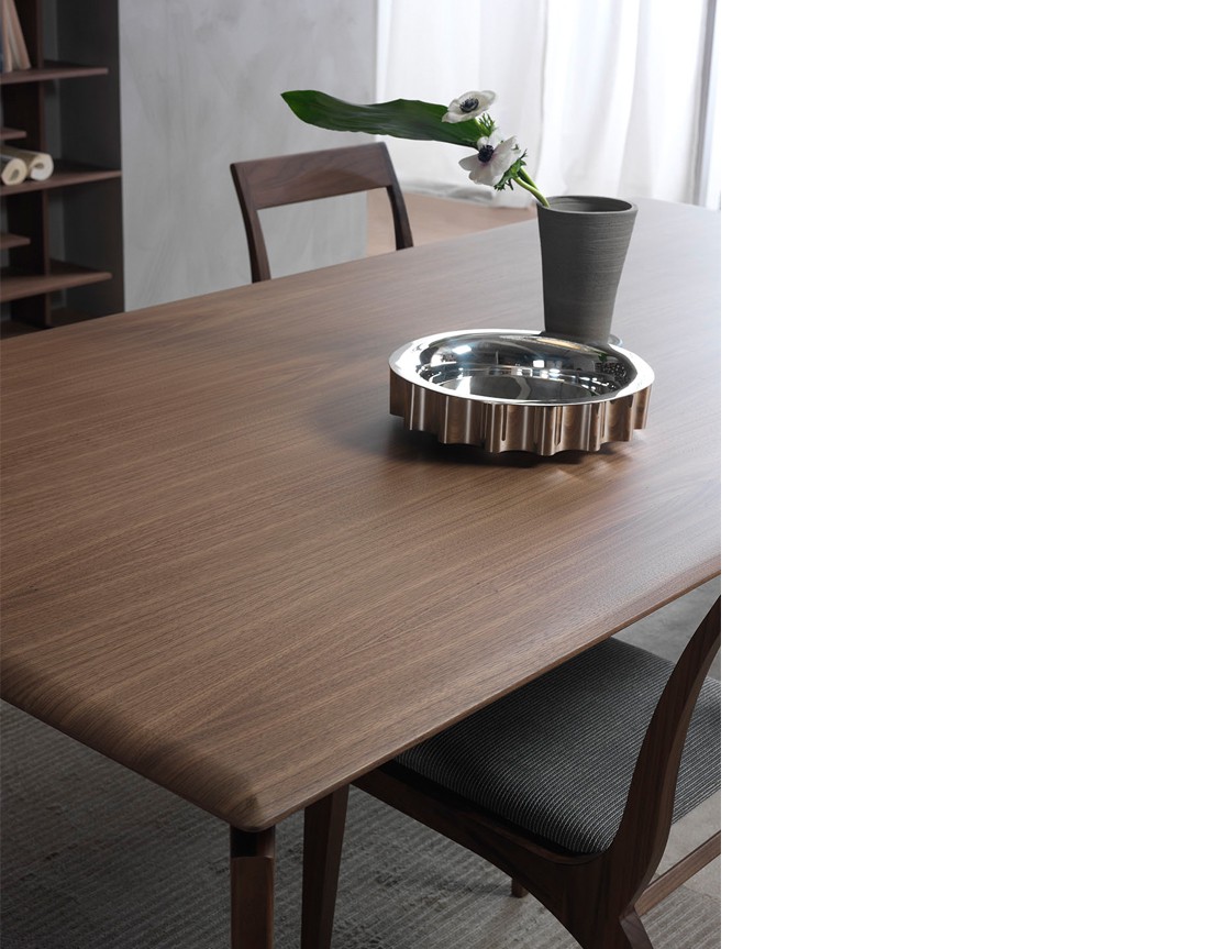 Tavolo da pranzo Hope con struttura in massello di noce canaletto o frassino.