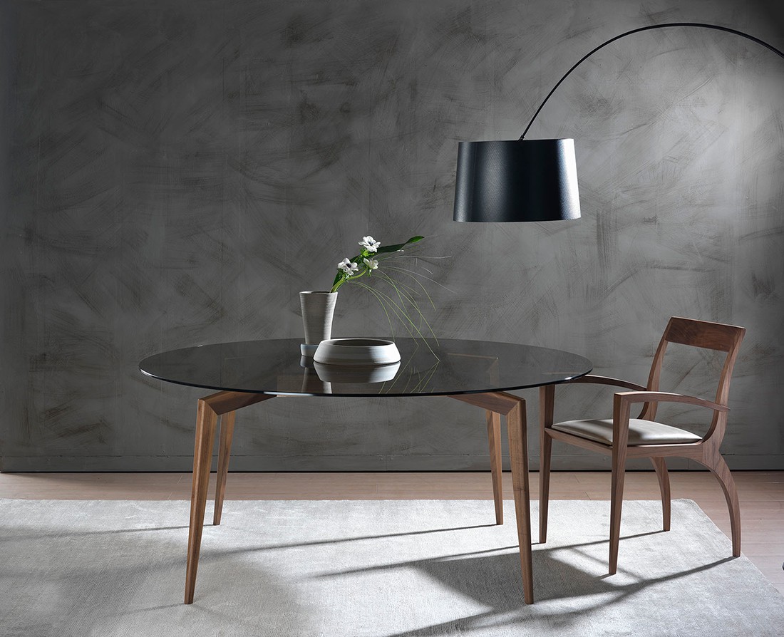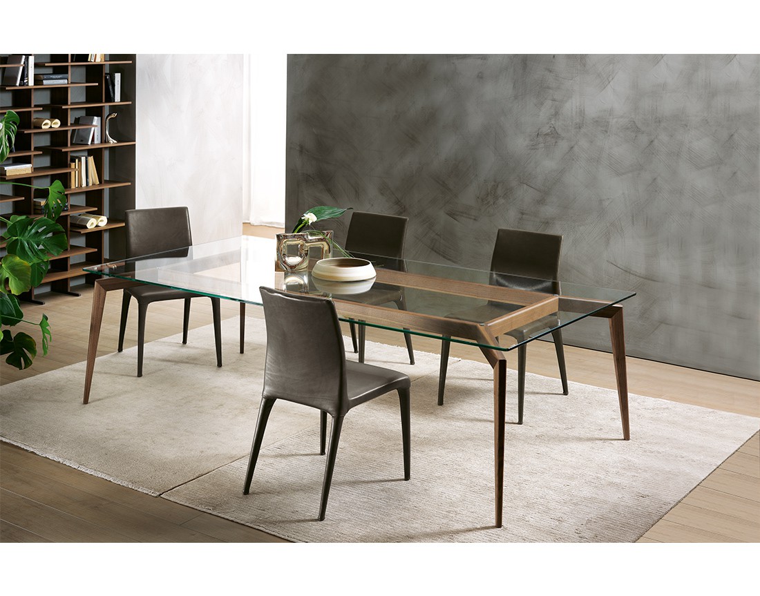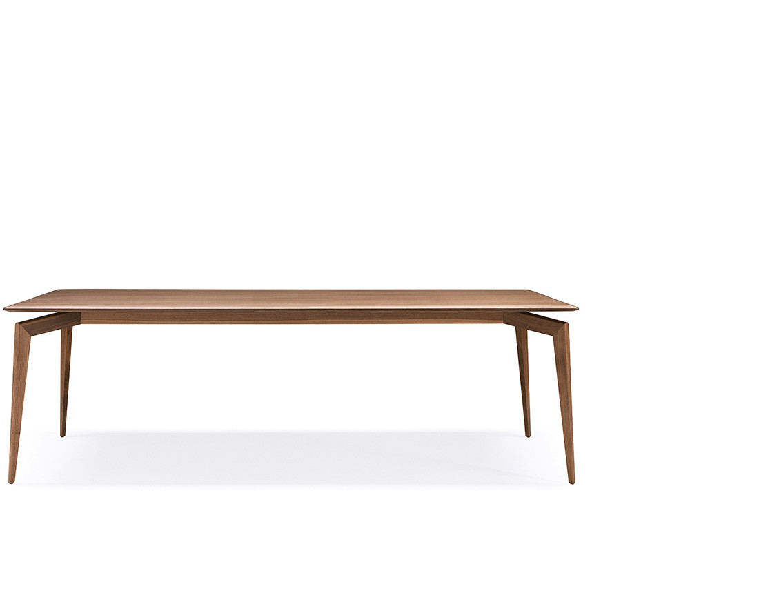 Tavolo da pranzo Hope con struttura in massello di noce canaletto o frassino.