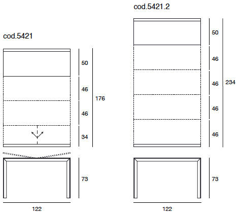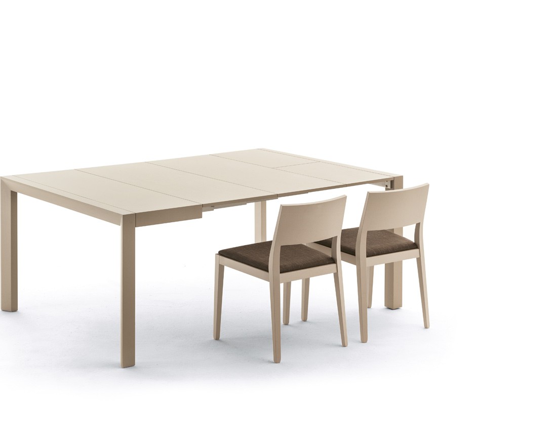 Tavolo-consolle allungabile dotato di 3 o 4 prolunghe per ottenere misure diverse, con struttura in massello di frassino e piani placcati frassino. Meccanismo telescopico in alluminio. La versione 5421.2 è dotata di sostegno centrale. Finiture disponibili: WG wengé, NC noce, TB tabacco, laccato opaco poro aperto ( L21 bianco, L29 madreperla, L23 cappuccino, L25 grigio fumo, L22 nero, L24 rosso ).
