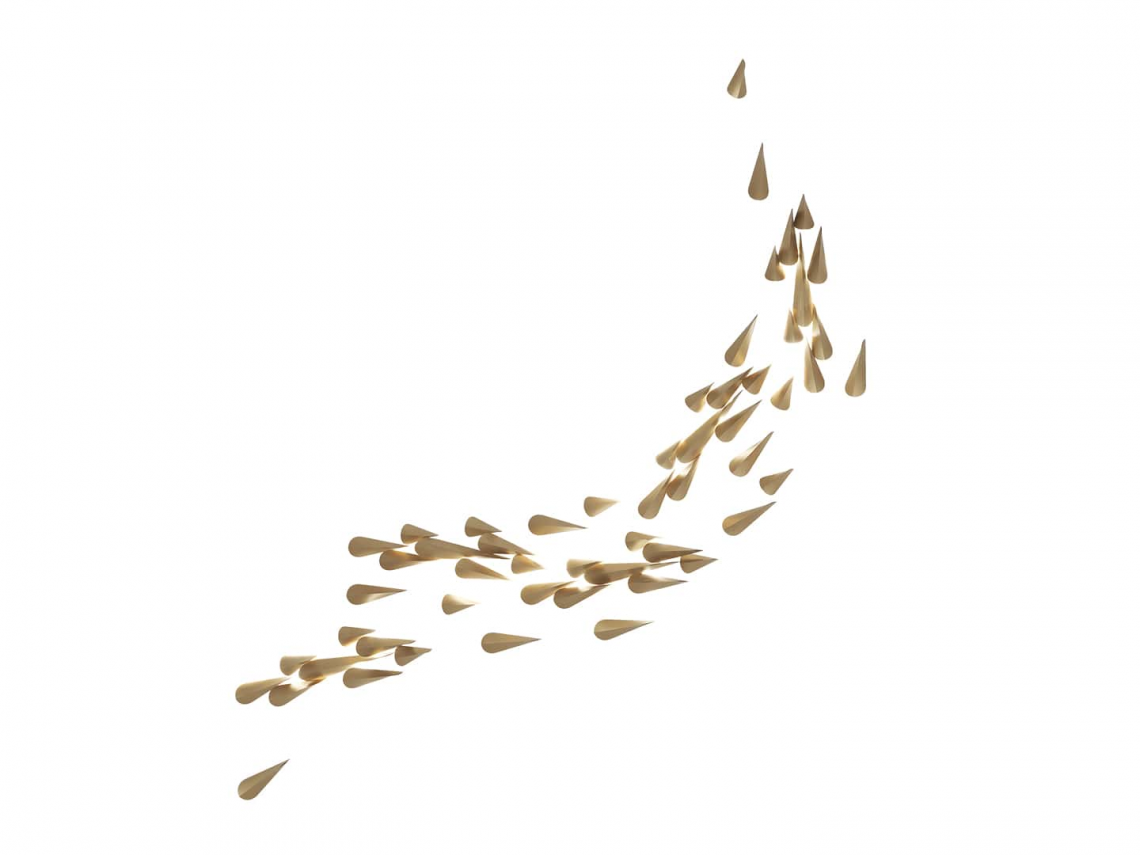 Anodine Wall è una graziosa lampada a parete che trasforma la luce in un dipinto. La composizione consta di 11 elementi, ognuno dei quali è a forma di foglia in metallo, realizzato asimmetricamente a mano da esperti artigiani con finitura oro satinato. Nel modulo fisso a 8 elementi, 3 sono dotati di Led da 2W ognuno. La composizione è completata da 3 elementi singoli, da disporre a piacere per creare infinite combinazioni. La preziosità della lavorazione artigianale rende ogni pezzo della collezione unico nel suo genere.