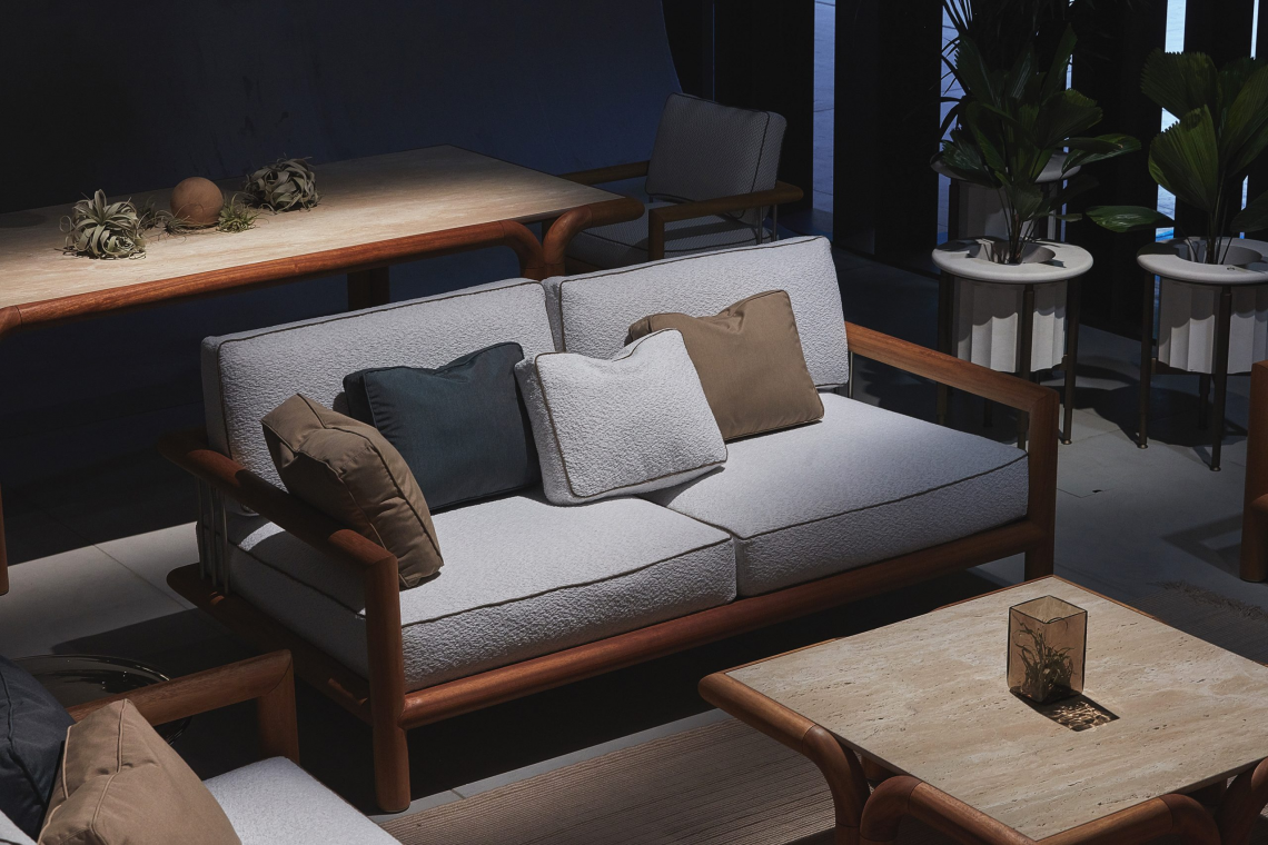 legno massello di Iroko, spazzolato e tinto ad olio naturale