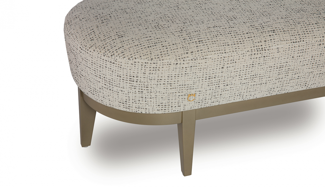 Completano la gamma della famiglia Venice le declinazioni bench e pouf. Entrambi poggiamo su una struttura in legno di faggio laccato nero opaco, e hanno un rivestimento, non sfoderabile, personalizzabile con pregiati tessuti, raffinate pelli bovine pieno fiore e nabuk.