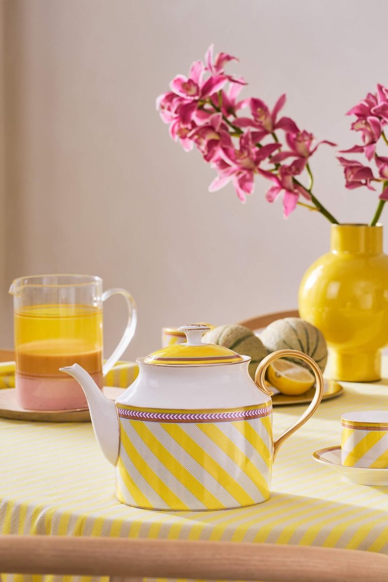 Are you organising a high tea for friends soon? Then this yellow and khaki striped teapot from the Pip Chique Stripes collection is perfect. Finished with gold edges for a luxurious look. You can perfectly mix and match the teapot with the rest of our Pip Chique Stripes collection. The Porcelain is made of bone China, a high-quality thin porcelain with a sophisticated design.