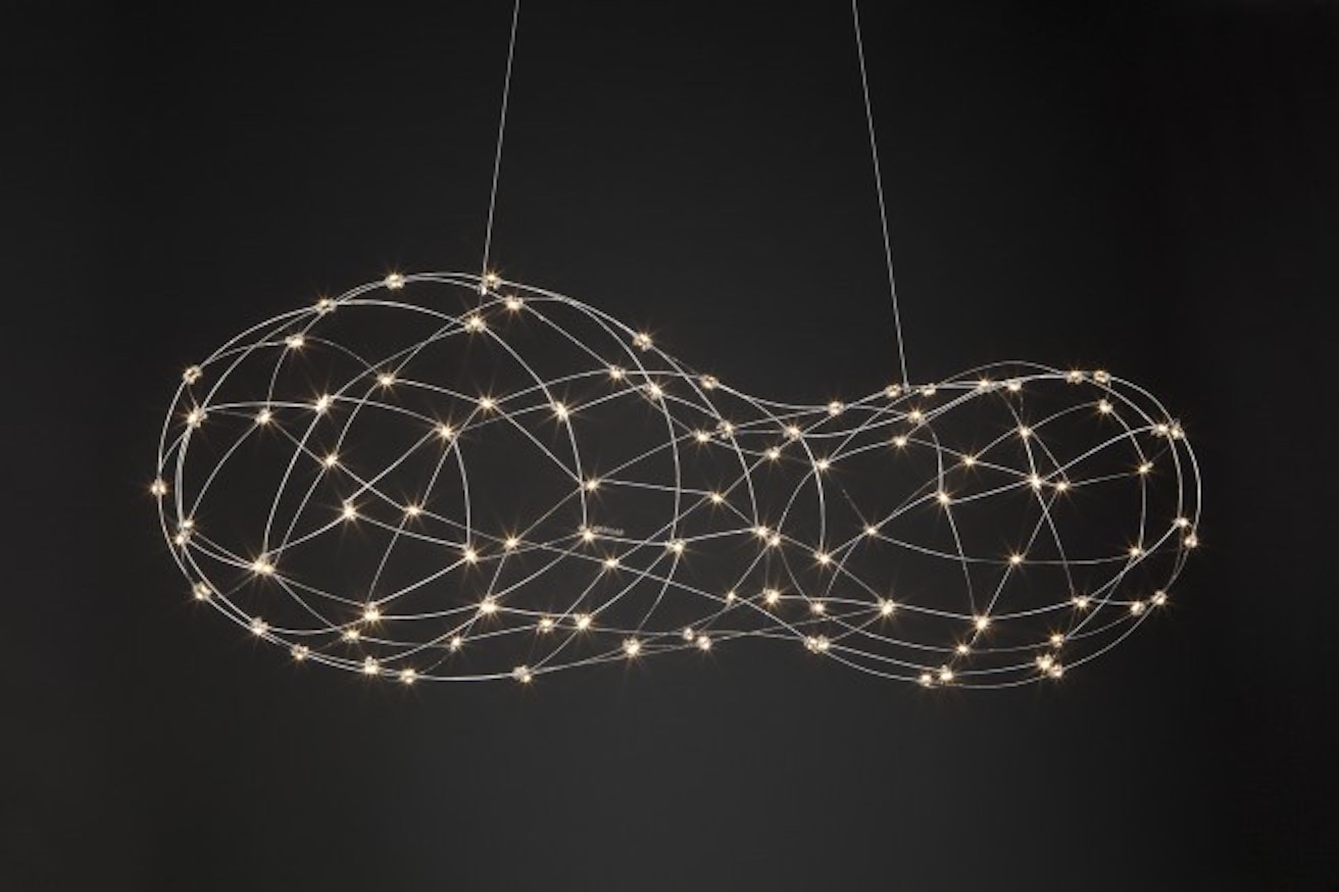 As an extension of the Cosmos Globe series. A very subtle frame is carrying the light sculpture without affecting its unique appearance. Perfect in an open spacr, in front of a wall or in a corner.
