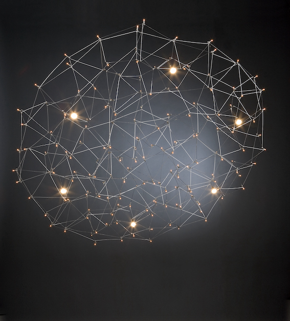 As an extension of the Cosmos Globe series. A very subtle frame is carrying the light sculpture without affecting its unique appearance. Perfect in an open spacr, in front of a wall or in a corner.