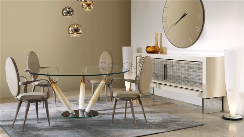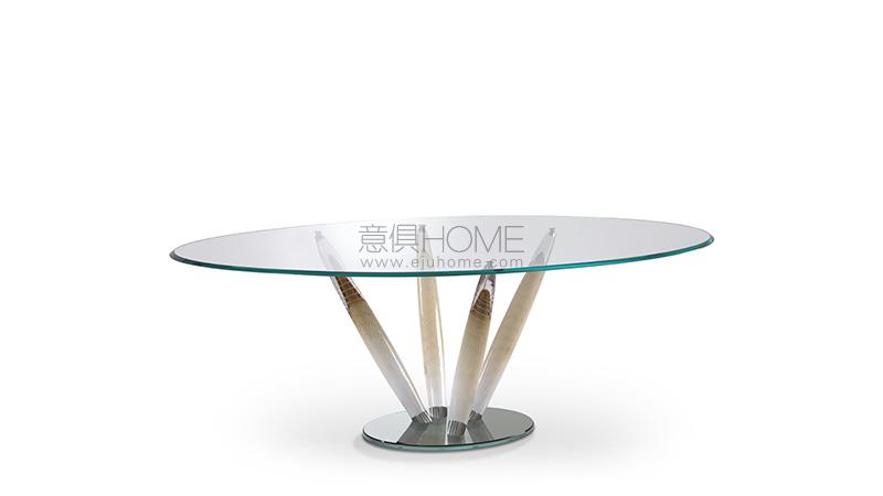 Dining table with blown Murano glass legs in Cappuccino finish and plinth in smoked mirror glass.Transparent glass top.