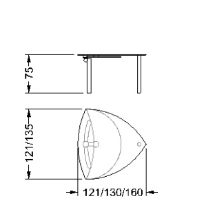 Extension table. Tempered shaped glass top and extension 15 mm thick. Legs in glazed inox-steel, round shape.