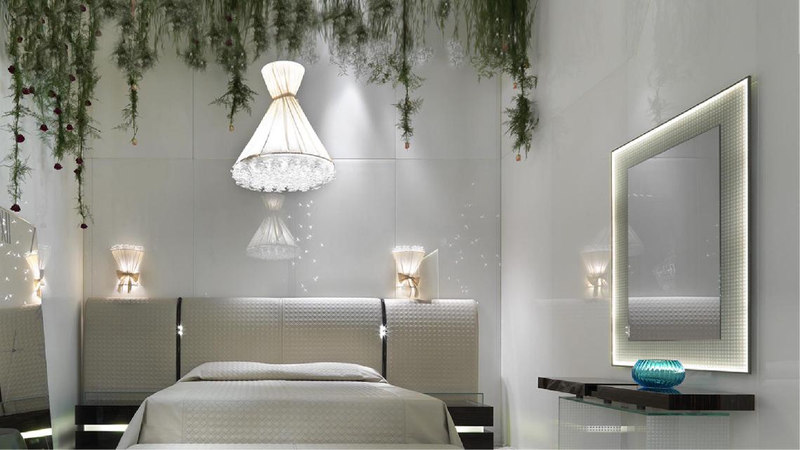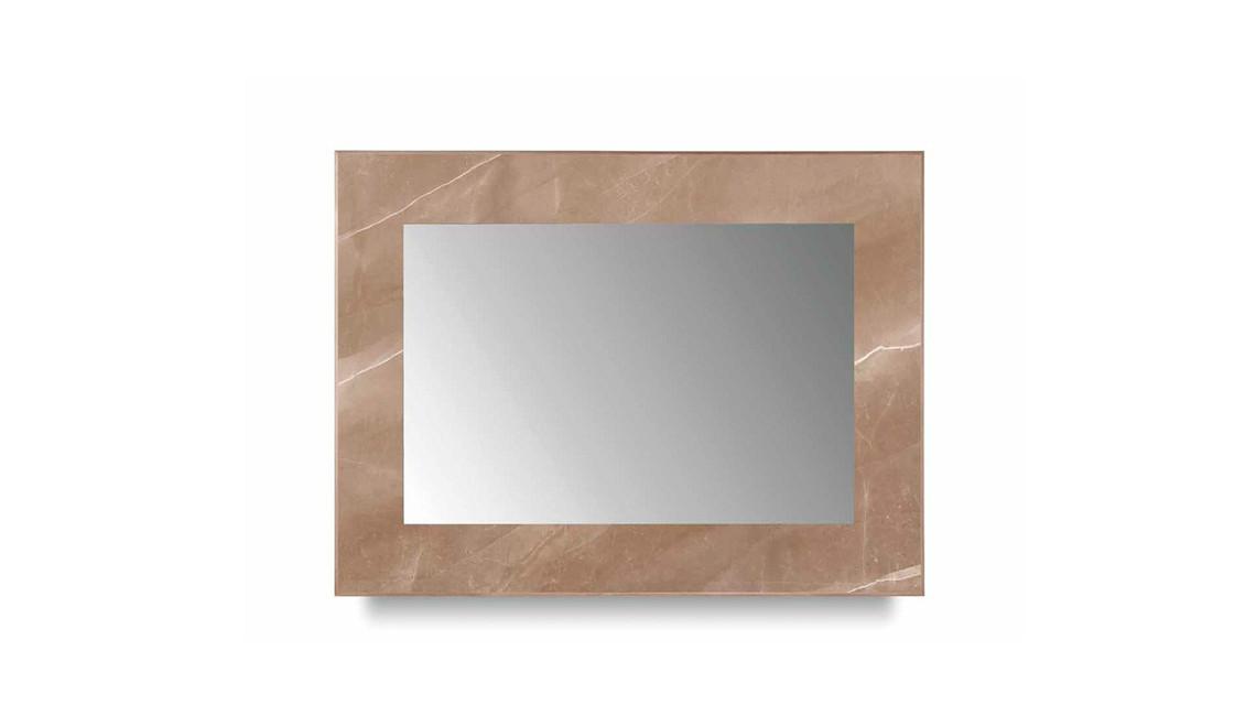 Mirror in extra-clear glass 5 mm thick with 45° bevel.Glass frame with Dune, San Marco or Vienna pattern design and metal profile in burnished brass finish with LED light.;