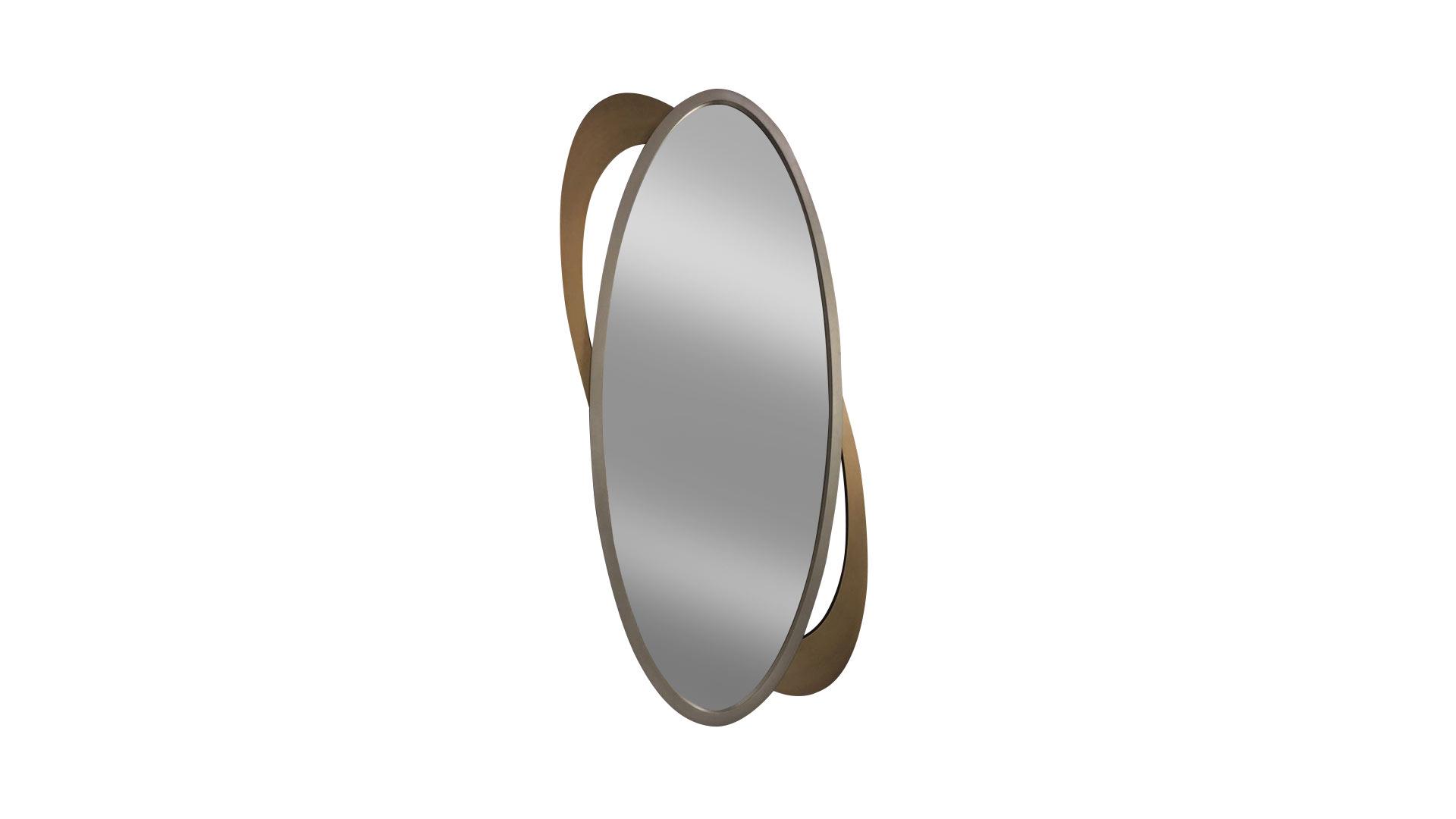 Extra clear mirror glass 5mm thick with bevel. Wooden frame in satin finish brass and titanium.