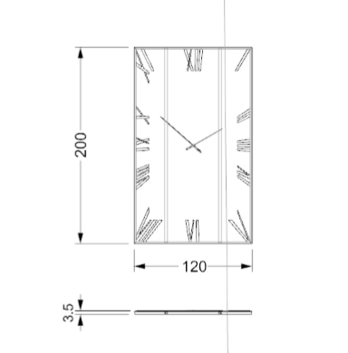 Round or rectangular mirror/clock in extraclear mirror glass with 20 mm bevel. Also available in smoke-grey mirror or in Antique Mirror or in Marble glass. Roman numerals in smoke-grey serigraphy and hands in titanium. Optional back LED lighting.