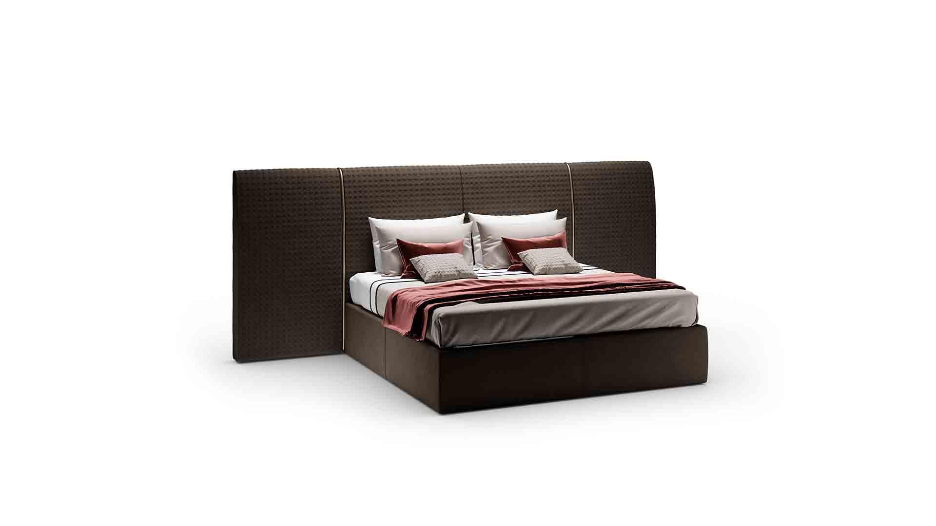 Padded bed upholstered in leather or fabric with San Marco quilting on the headboard.