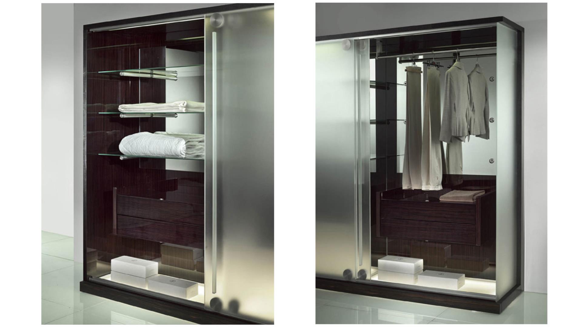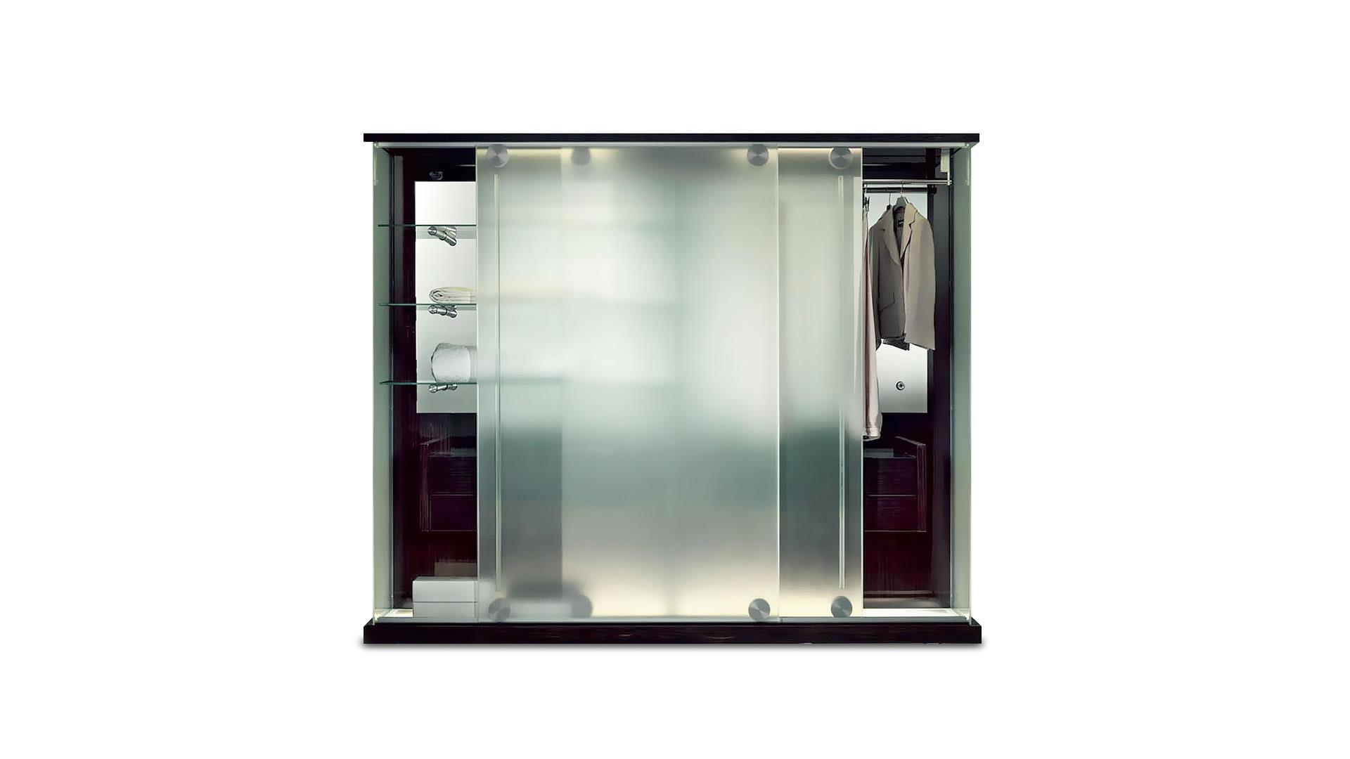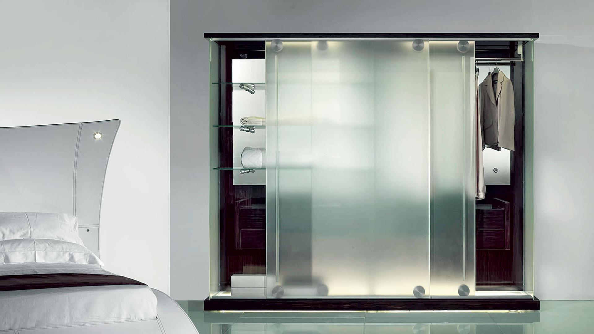 Wardrobe with sliding doors in extraclear frosted glass 10mm thick.