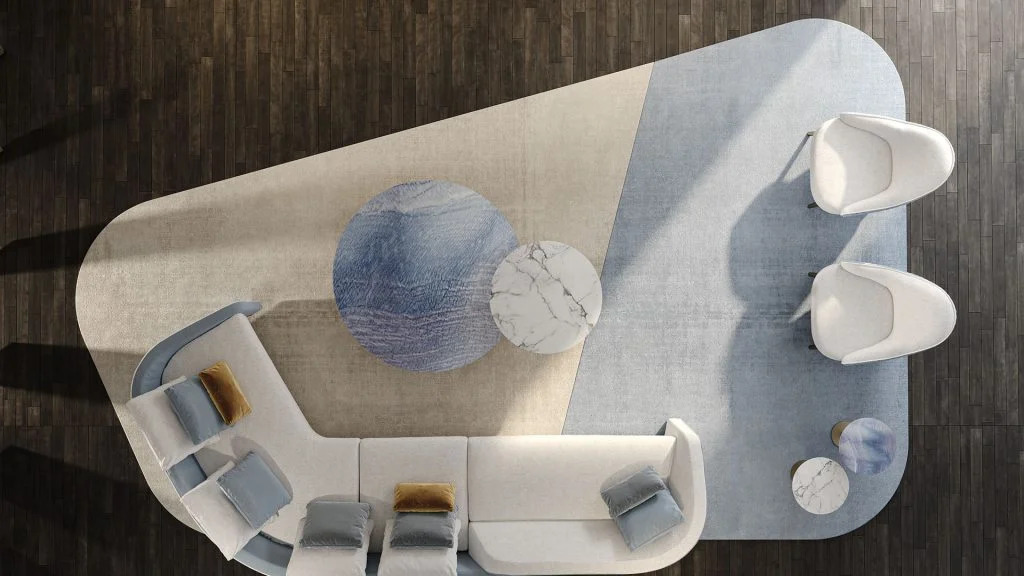 Collezione di tappeti realizzati in tencel e lana New Zealand. Disponibili in diverse nuance cromatiche.