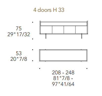 Buffet con struttura in legno finitura Bronze (100M), ottone (104M), ottone dark (105M), titanium (101M), Noce Canaletto, Canaletto Henné o laccato lucido Venezia.