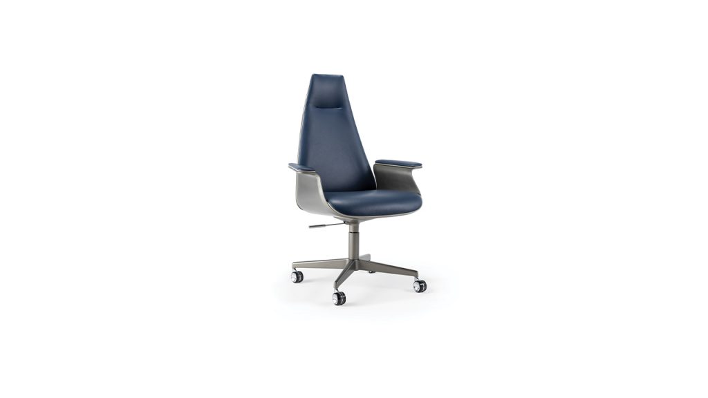 Poltrona direzionale con scocca esterna in finitura Bronze (100M), ottone (104M), ottone dark (105M), titanium (101M).