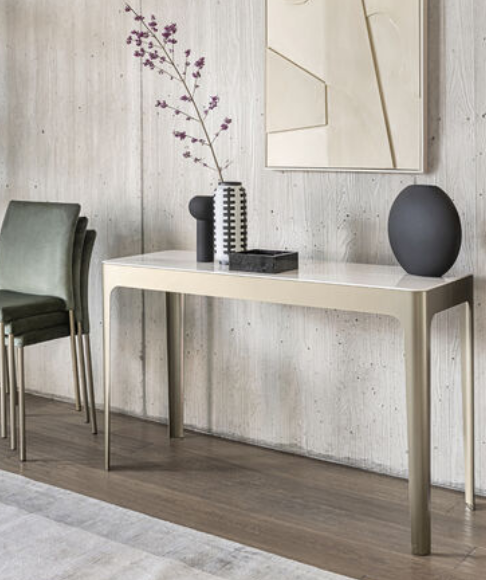 La struttura in metallo è disponibile nelle finiture laccato bianco opaco, verniciato gra-fite, champagne perlato. Su richiesta anche struttura verniciata in ottone, titanio o cobalto spazzolati a mano.