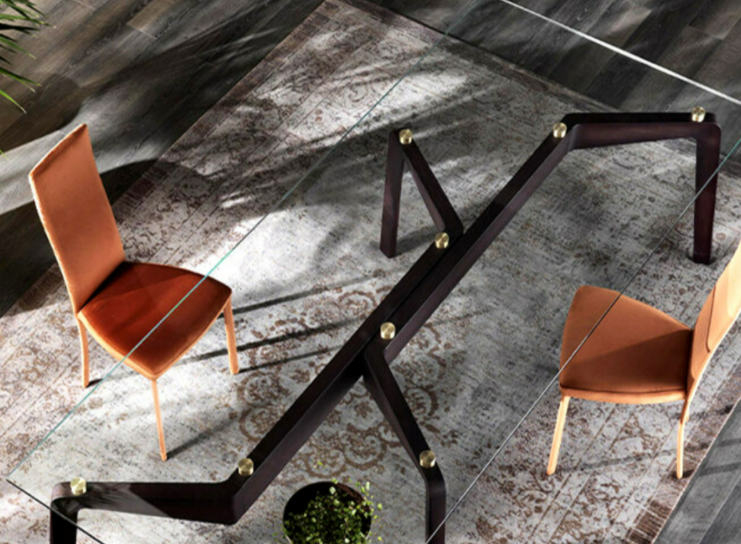 Il tavolo Atlante è interamente in legno, disponibile nelle finiture noce canaletto e rovere coke termo-trattato. Le gambe a cavalletto della larghezza di 17 cm gli conferiscono un aspetto maestoso. La bisellatura del piano mette in risalto le calde venature del legno. Il tavolo è dotato di un sistema di allunghe con guide in alluminio anodizzato. Le allunghe, da 40 cm, sono interne in biglia con il