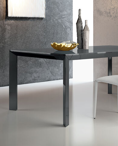 Il tavolo Atlante è interamente in legno, disponibile nelle finiture noce canaletto e rovere coke termo-trattato. Le gambe a cavalletto della larghezza di 17 cm gli conferiscono un aspetto maestoso. La bisellatura del piano mette in risalto le calde venature del legno. Il tavolo è dotato di un sistema di allunghe con guide in alluminio anodizzato. Le allunghe, da 40 cm, sono interne in biglia con il