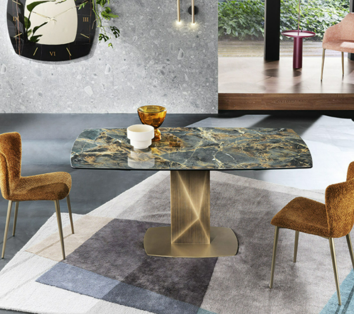 Il tavolo Atlante è interamente in legno, disponibile nelle finiture noce canaletto e rovere coke termo-trattato. Le gambe a cavalletto della larghezza di 17 cm gli conferiscono un aspetto maestoso. La bisellatura del piano mette in risalto le calde venature del legno. Il tavolo è dotato di un sistema di allunghe con guide in alluminio anodizzato. Le allunghe, da 40 cm, sono interne in biglia con il