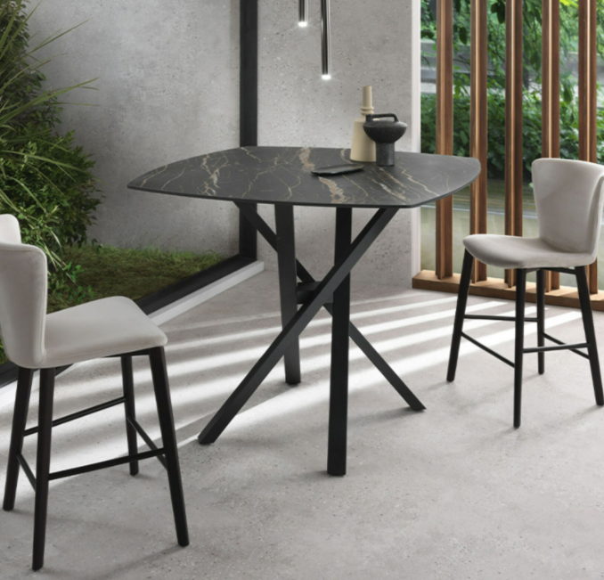 Il tavolo Atlante è interamente in legno, disponibile nelle finiture noce canaletto e rovere coke termo-trattato. Le gambe a cavalletto della larghezza di 17 cm gli conferiscono un aspetto maestoso. La bisellatura del piano mette in risalto le calde venature del legno. Il tavolo è dotato di un sistema di allunghe con guide in alluminio anodizzato. Le allunghe, da 40 cm, sono interne in biglia con il