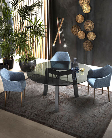 Il tavolo Atlante è interamente in legno, disponibile nelle finiture noce canaletto e rovere coke termo-trattato. Le gambe a cavalletto della larghezza di 17 cm gli conferiscono un aspetto maestoso. La bisellatura del piano mette in risalto le calde venature del legno. Il tavolo è dotato di un sistema di allunghe con guide in alluminio anodizzato. Le allunghe, da 40 cm, sono interne in biglia con il piano.