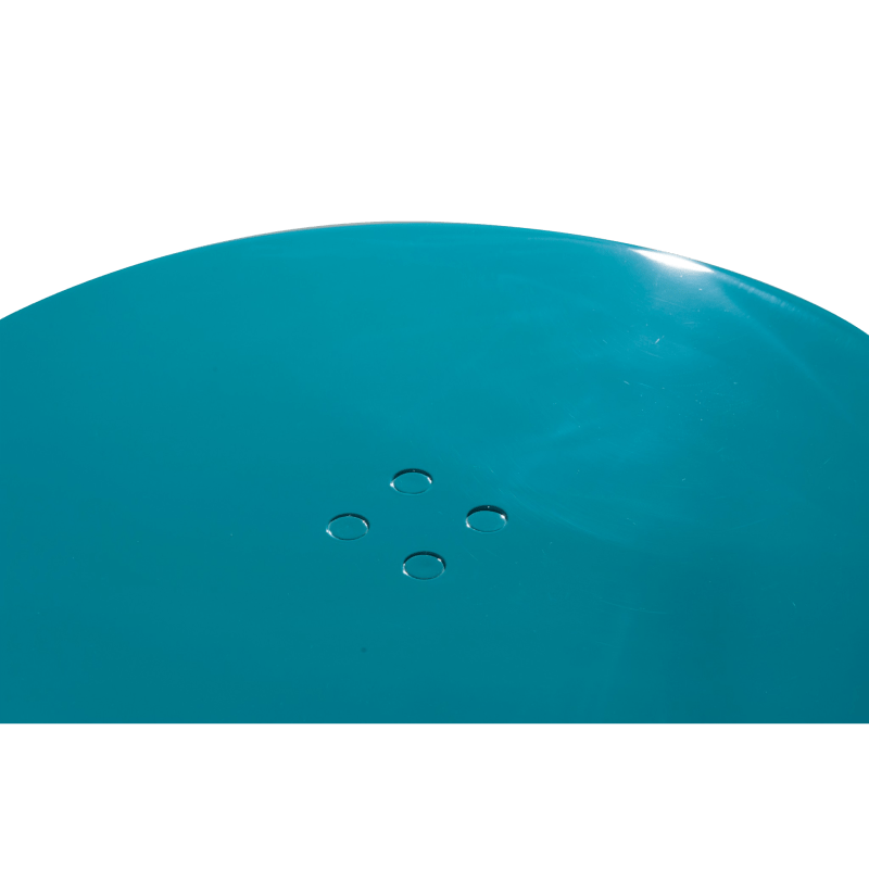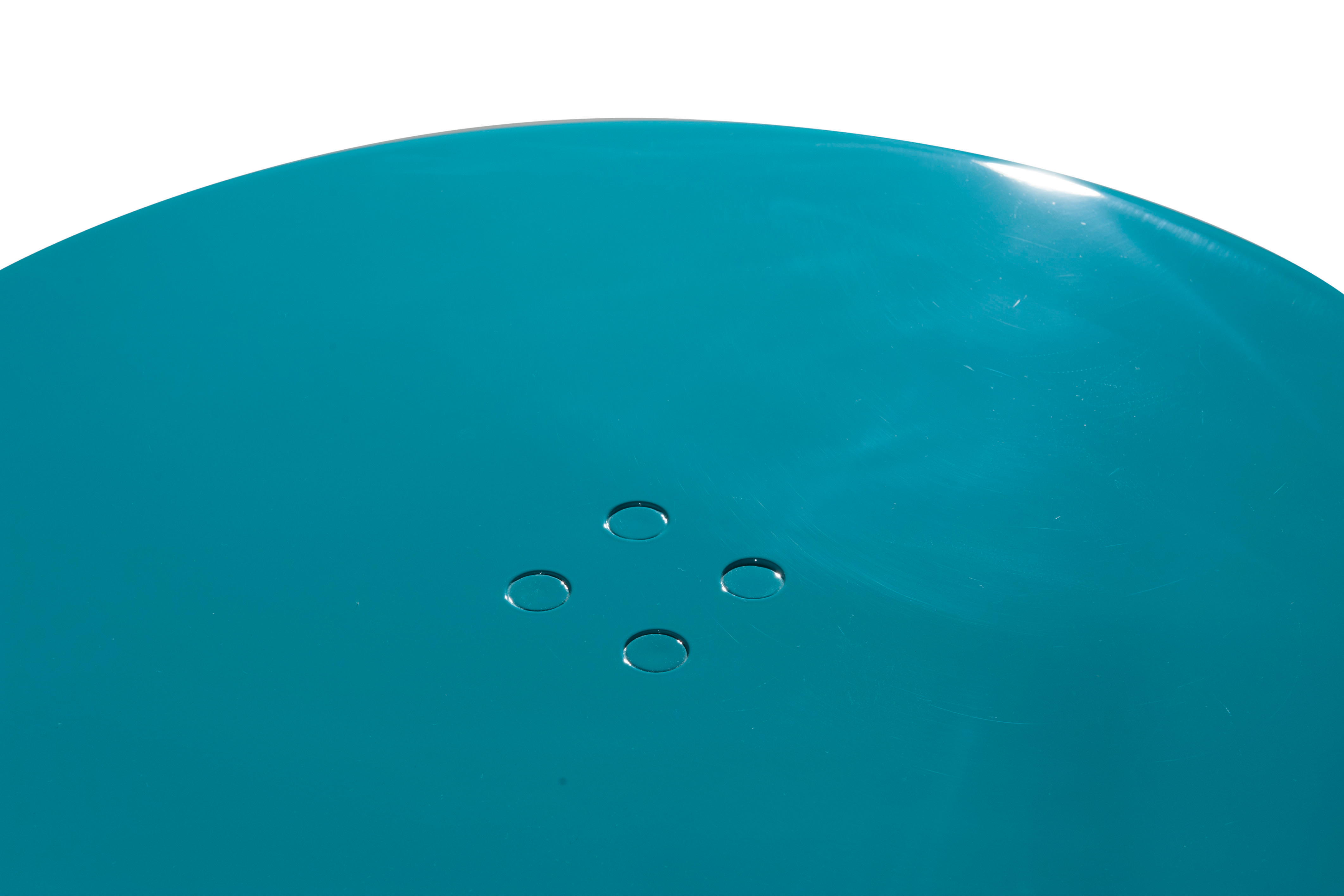 這款茶幾的設計特點形狀從一個十字形的底部逐漸過渡到一個圓柱形的頂部,看起來像火箭的尾部,材質為樹脂。