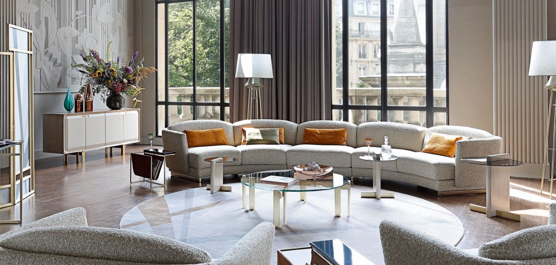Abituato alle boutique e agli hotel di lusso, Bruno Moinard firma qui per Roche Bobois una collezione completa con due sfaccettature: la prima gioca su spessori e rotondità rassicuranti, mentre la seconda si occupa di purezza geometrica. La ricercatezza dei dettagli e dei materiali sono il loro punto in comune. Mobili che fanno parte del tempo e si fondono con il classico e il moderno senza oscurare i volumi.