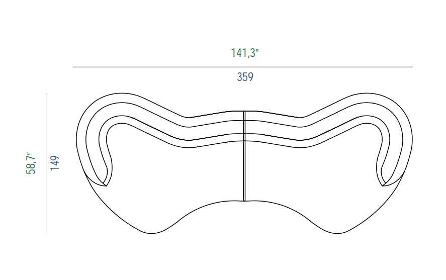 Rivestito in pelle o tessuto. Seduta in mousse poliuretanica 35M kg/m3. Schienale in mousse poliuretanica 21SM kg/m3. Struttura in abete massiccio e multistrato di pioppo (legno CARB). Sospensioni con cinghie elastiche incrociate. Piedini in metallo tinto nero. Cuscini decorativi in opzione.