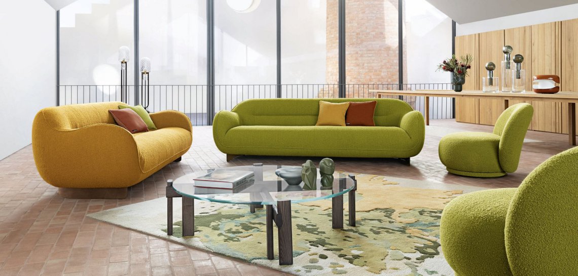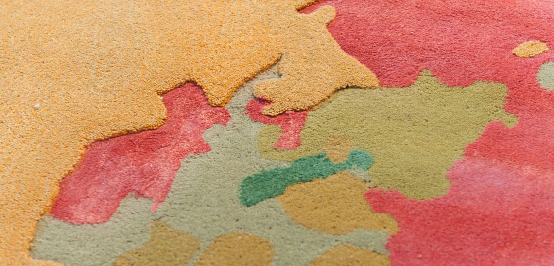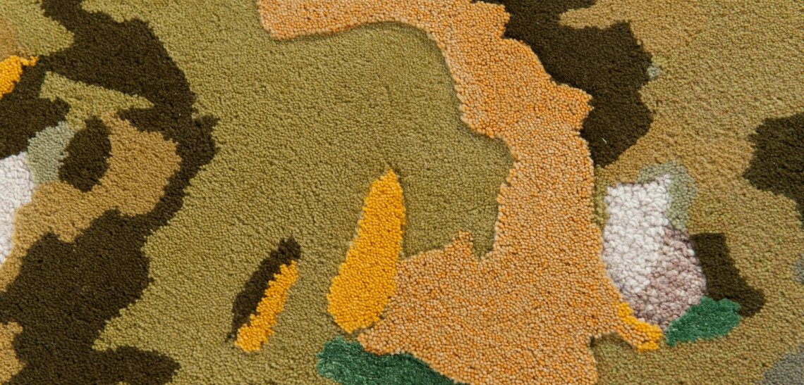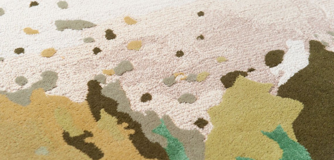Tappeto dall'aria primaverile, Sunflower è la riproduzione grafica di un girasole. Il melange di tecniche di lavorazione, con lavorazione a bouclé per lo sfondo e il tuftato rasato per il fiore e le foglie, nonché le differenze di altezza, donano rilievo e dinamismo a questo tappeto molto colorato.