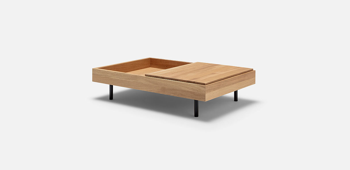 Dimensions: Coffee table with shelving: Height 21, 24 or 27 cm: 63 x 94 cm or 63 x 104,5 cm