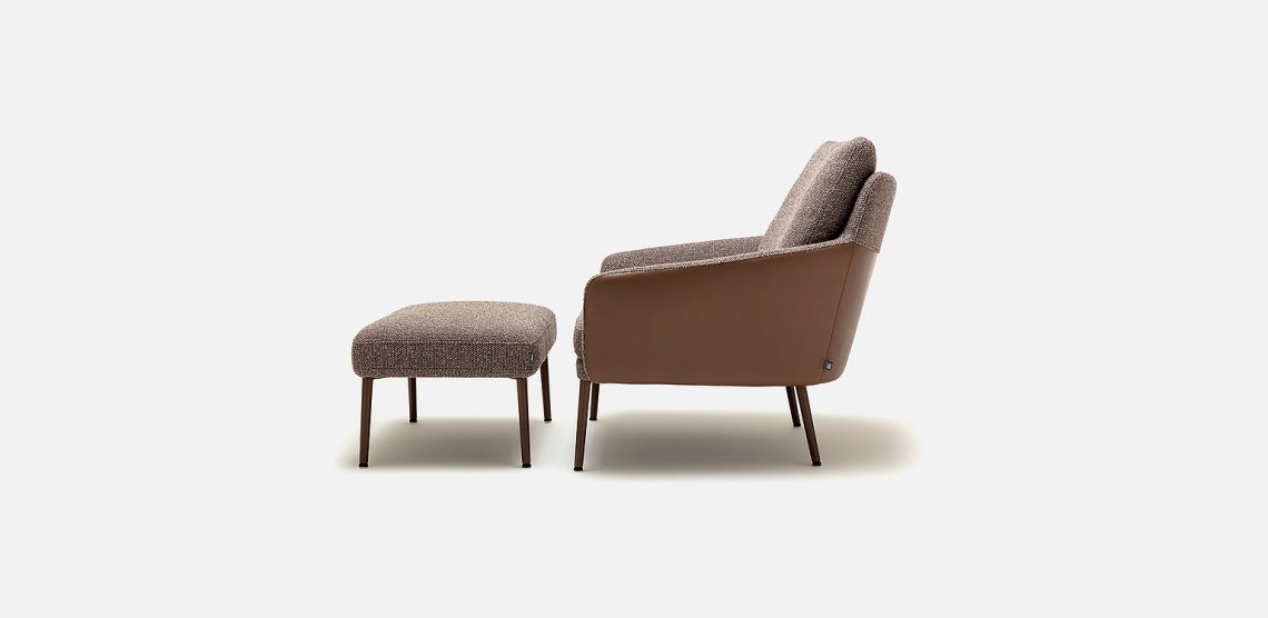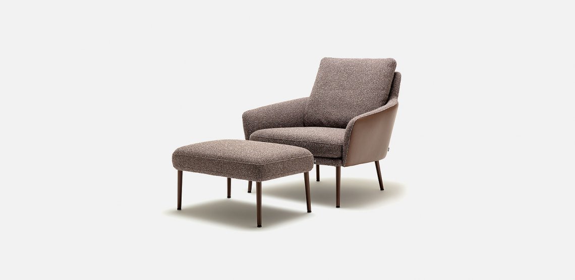 The especially soft backrest cushions and high seat depth create a casual seating sensation. Sit back and relax with the additional footstool. Its lightweight aluminium frame offers Rolf Benz JON maximum flexibility, perfecting the armchair’s stylish appearance.