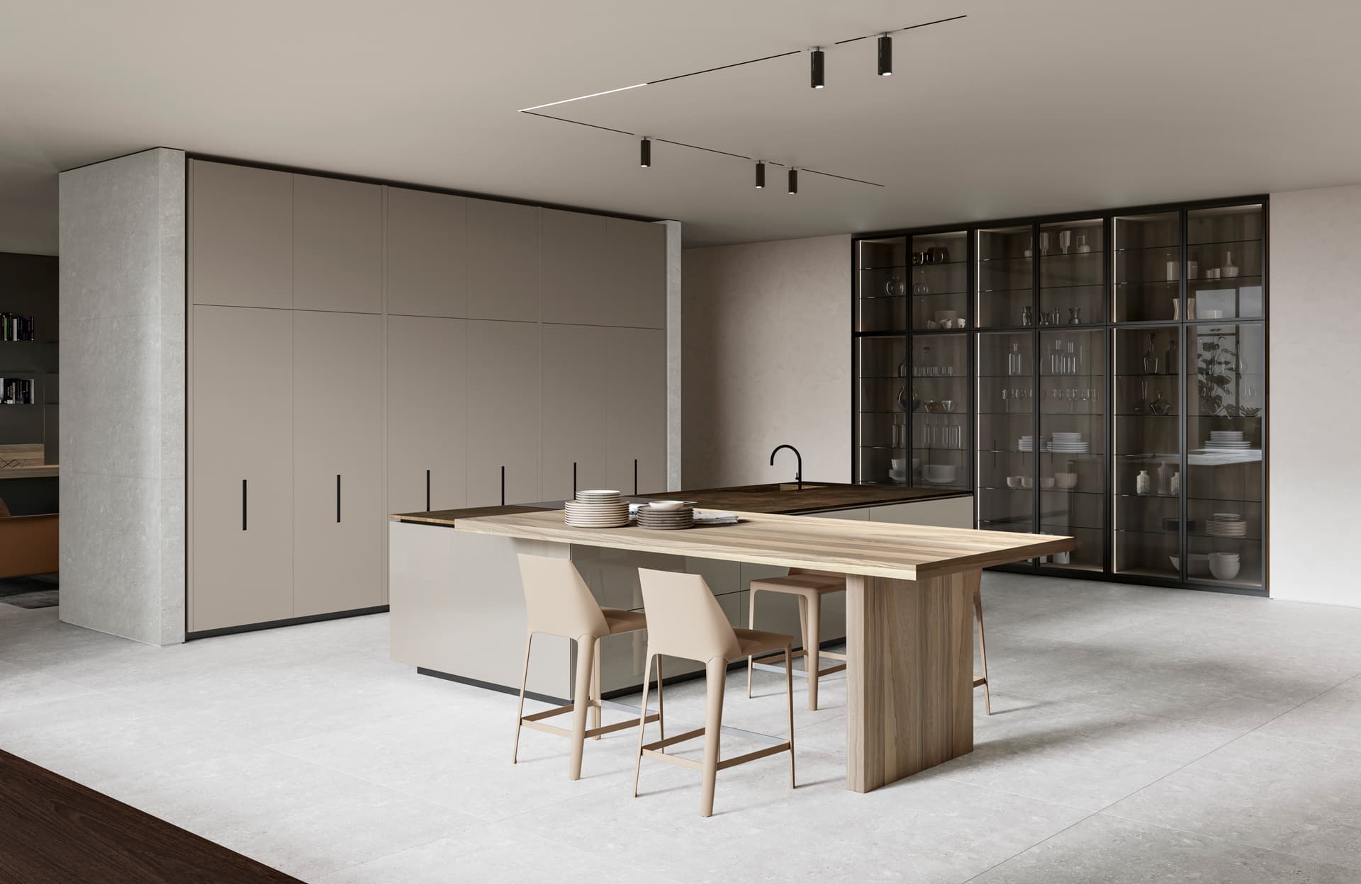 Massimo Castagna ripensa ed evolve la tipologia base della cucina contemporanea realizzando un progetto originale e innovativo che va oltre il concetto della cucina caratterizzata dall’anta: basi con volumetria a zoccolo basso a grande capienza e una vasta quantità di componenti speciali che, come oggetti, sono aggregabili alla composizione delle basi, proponendo nuovi significati e funzionalità, oltre che un alto grado di personalizzazione. Un progetto dinamico, costantemente in progress che evolve e si arricchisce man mano di nuovi elementi, valori, materie e significati.