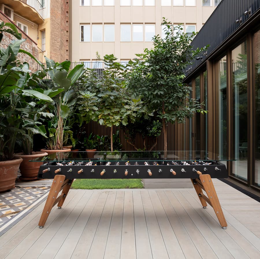 With a height of 100 cm (39.4 in), it’s a tall table that will be the centre of attraction wherever it stands, whether in a bar, in the common area of a workplace, in the games room of a private dwelling or on a porch. Accompanied by a set of counter-height stools (76 cm / 30 in), it creates the perfect setting for meetings and maximum fun around the table.