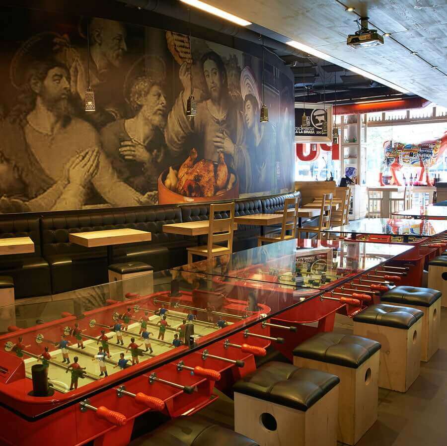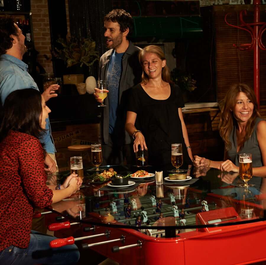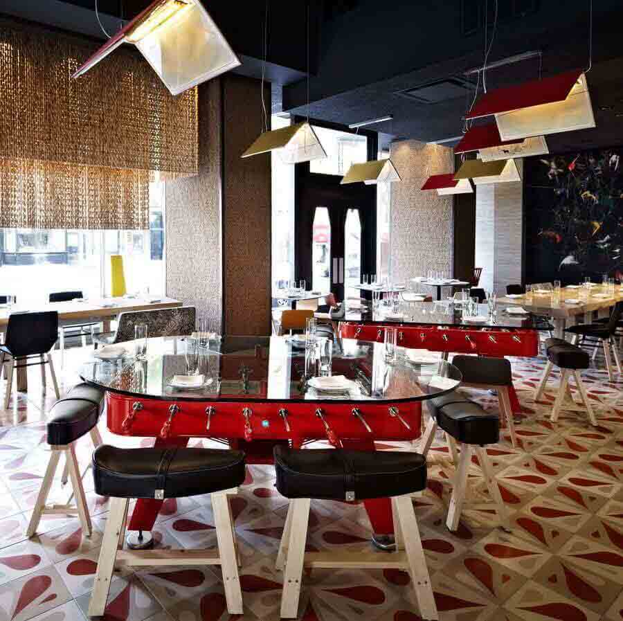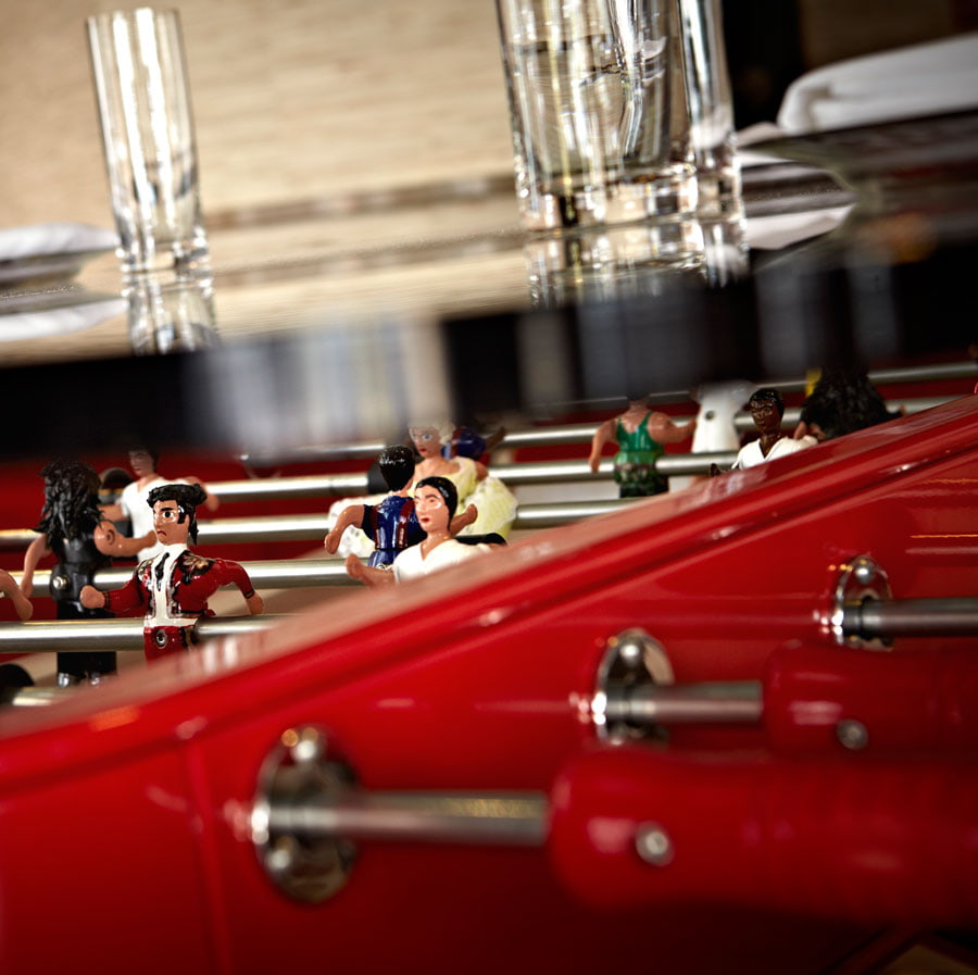 This football-dining table combines gastronomy, playtime and design. The world-famous chef José Andrés fell in love with the RS2 football table and was keen to bring it into his culinary universe, starting with his Jaleo restaurants in Washington and Las Vegas. His word was our command. What began as the customisation of one of our football tables for this most eclectic and Spanish of projects has become an item in our Stay Playful collection. “The RS2 Dining is an extra ingredient, a special touch in some of my restaurants,” says José Andrés.
