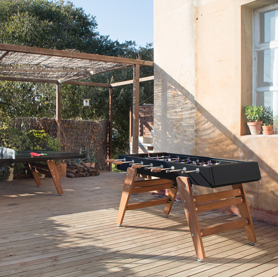 RS3 Wood is designed for outdoor living. It has the same structure as the RS3 but is fitted with wooden legs, which give the design added warmth and a more contemporary look. The essence of the game remains intact, because playability, toughness, durability and design form the perfect combination in all our football tables, so you can enjoy the game without having to compromise on design. This table will be with you for as many different lives as you wish to live.