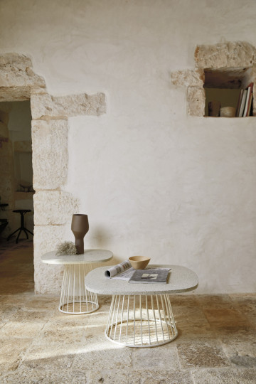 Pouf in alluminio verniciato a polveri, intrecciato con Round Searope. Pratico e dal gusto finemente classico, perfetto per accompagnare la poltrona coordinata. Adatto per interno e per esterno, sia in contesti residenziali che contract.