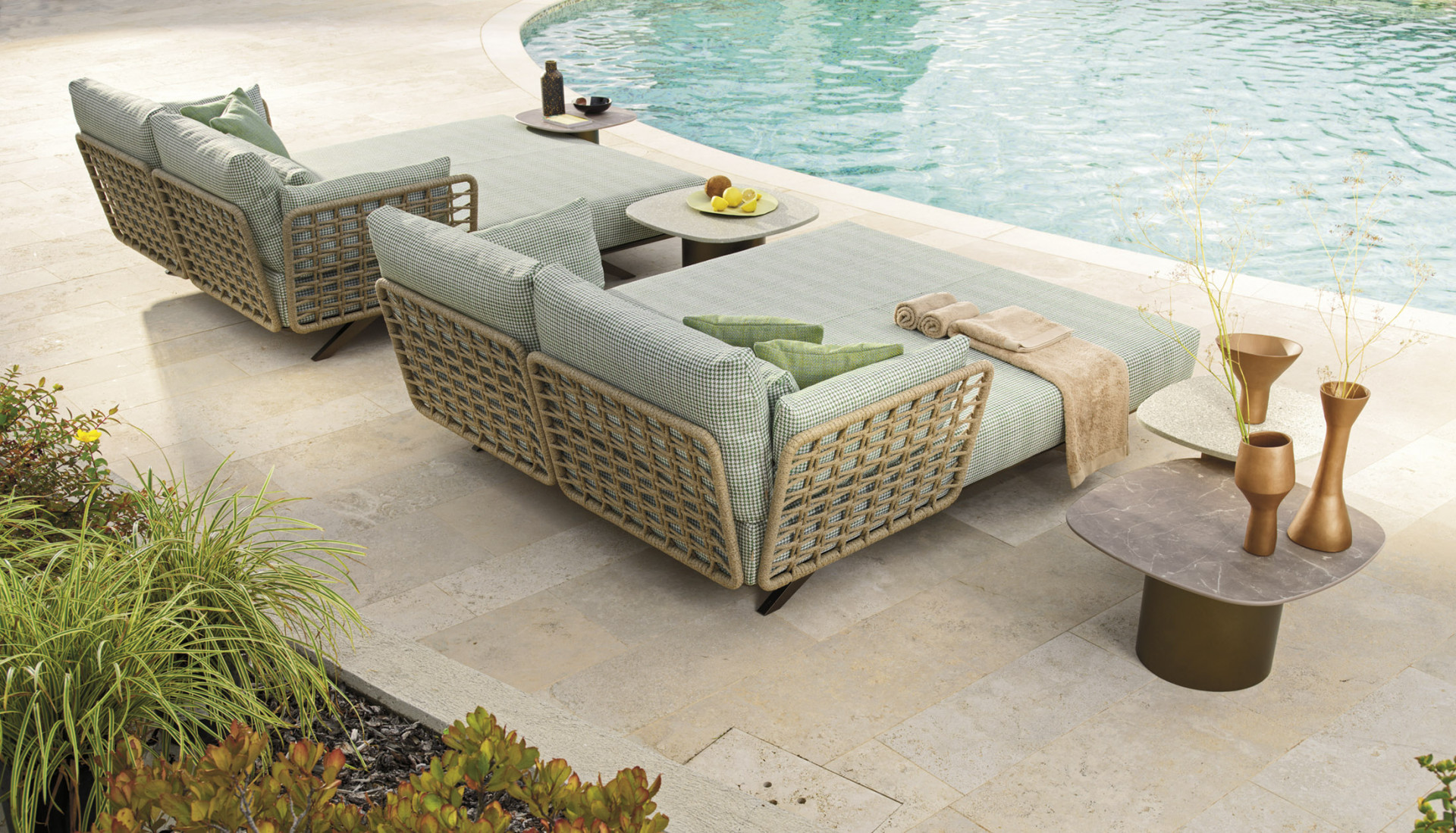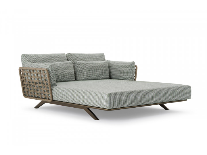 Daybed in acciaio inox Aisi 304 ed alluminio, verniciato a polveri ed intrecciato in Oval Trendyrope. Linee che valorizzano l'iconico stile italiano, dove le lavorazioni in corda donano un'estetica materica ed artigianale alla morbidezza avvolgente delle sedute, per concepire uno spazio ideale, dedicato al relax e alla socializzazione. Progettato sia per l'arredamento residenziale che contract, outdoor e indoor.